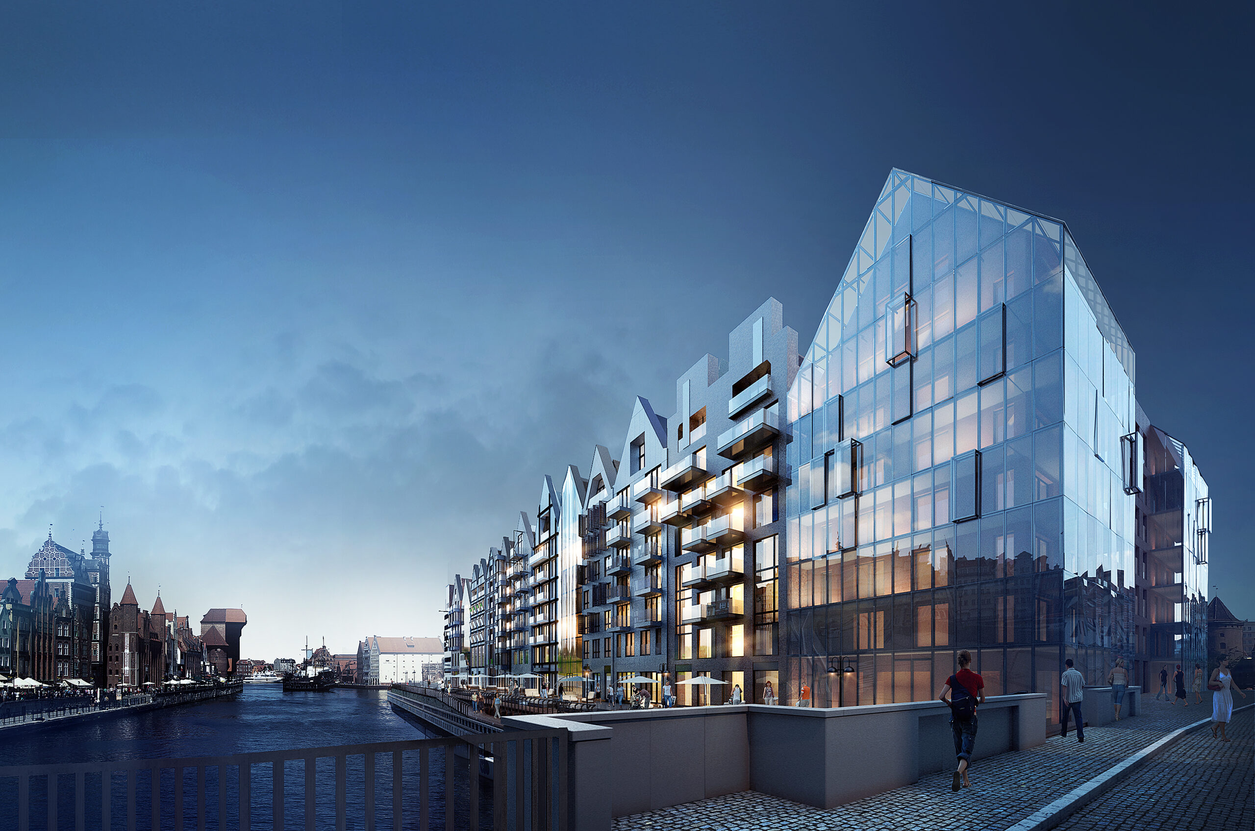 Marcin Kozikowski, architekt Deo Plazy: Przez kilka dziesięcioleci od wojny zdewastowana i niezabudowana część Północna Wyspy Spichrzów, stanowiła temat dla wielu konkursów i projektów koncepcyjnych, które nigdy nie zostały zrealizowane. Rozpoczęcie prawdziwego procesu inwestycyjnego w tej zaniedbanej części miasta stało się możliwe po uchwaleniu przez Radę Miasta Gdańsk Miejscowego Planu Zagospodarowania Przestrzennego i uporządkowanie przez Gminę spraw własnościowych. Od tego czasu na Wyspie Spichrzów rozpoczął się zakrojony na szeroką skalę proces inwestycyjny. Jednym z projektów, realizowanych na Wyspie Spichrzów w jej najbardziej eksponowanej części jest zespół Deo Plaza. Odbyła się i trwa nadal szeroka debata publiczna na temat tego, jak należy projektować w tej części miasta: stale nurtujące pytanie brzmi czy ma być to odtwórstwo nieistniejącej dawnej zabudowy czy ma być to współczesna architektura, identyfikująca budynki z okresem, w którym powstają. Przystępując do projektowania zespołu, jak również innych inwestycji, które projektuję na Wyspie Spichrzów przyjąłem jednoznaczne założenie, iż wszystkie elementy historyczne, które się zachowały należy rewitalizować i wkomponowywać w nową zabudowę. Nowe budynki powinny w moim przekonaniu mieć współczesny wyraz architektoniczny, przy uwzględnieniu warunków, określonych w MPZP. Odnoszą się one do odtworzenia dawnych podziałów parcelacyjnych, gabarytów budynków i dawnego układu urbanistycznego. W projekcie Deo Plaza wszystkie te warunki zostały spełnione, natomiast nowym elewacjom nadałem współczesny wyraz architektoniczny przy zastosowaniu nowoczesnych technologii. Niemniej, materiały takie, jak cegła klinkierowa, płyty włókno-cementowe, beton architektoniczny, metalowe detale np. balustrad nawiązują do materiałów dawniej stosowanych w nieistniejącej w tym miejscu zabudowie. W niektórych elewacjach nawiązałem wprost do zabudowy dawnych spichlerzy poprzez wprowadzenie rysunku odzwierciedlającego konstrukcję szachulcową.