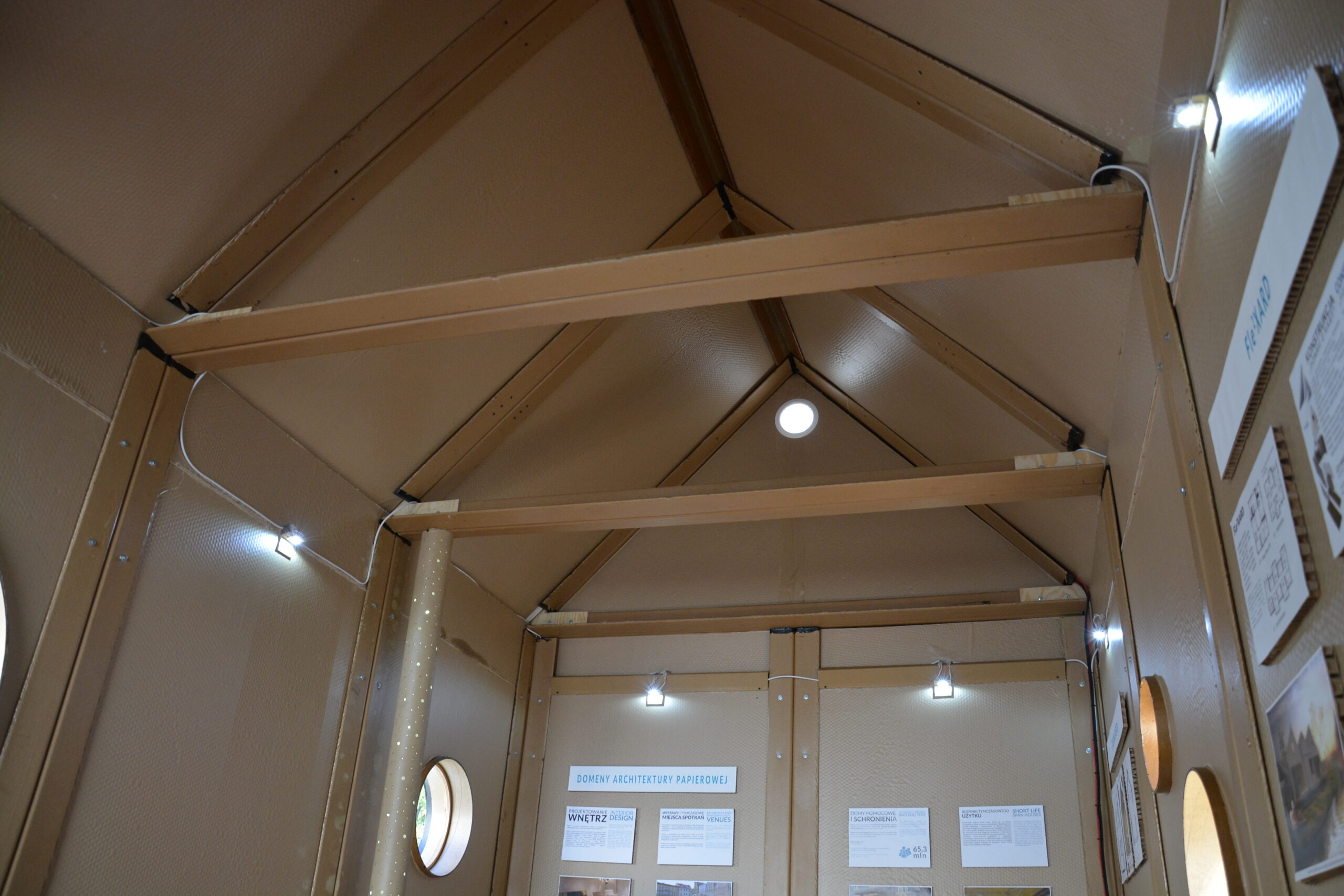 Abstract. Paper in architecture. Contemporary challenges of global politics and economy concern mainly the equalization of humans life and rationalization in the management of Earth resources. Increasing globalization, the development of information technology and transport influence the dynamics of the societies. Growing migration opens new directions of the development of housing architecture in the scope of economy, structure and ecology. Implementation of low-cost, recycled and recyclable building materials is one of the most important contemporary areas for researchers and designers. The article describes the social context which indicates the growing need for new type of materials and structural systems. One of such a materials is paper. Four products of paper industry: paper tubes, cardboard sections (L- and U-shapes), corrugated cardboard and honeycomb panels are depicted as a building elements of existing architectural structures. Both the properties of paper and its connotation do not indicate its potential in the building industry. However, the directions of the paper industry development are signs that paper can play a surprising role in our civilization. Key words: paper, cardboard, architecture, sustainable development, migration