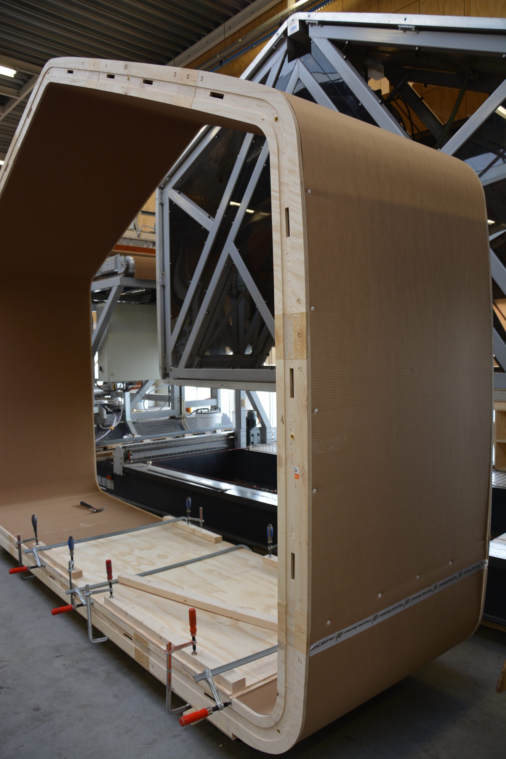 Papier jest materiałem znanym ludzkości od 105 r. n.e. Od XIX wieku wyrabiany jest głównie z włókien drzewnych. Papier ma strukturę sieciową, a jego głównym składnikiem jest celuloza. Celuloza jest najczęściej występującym naturalnym polimerem na kuli ziemskiej, jej zasoby są traktowane jako niewyczerpywalne [7]. Zdolność do tworzenia wiązań wodorowych pomiędzy włóknami celulozy jest zasadniczym zjawiskiem wpływającym na właściwości mechaniczne papieru, a także na metody jego produkcji oraz recyklingu. Materiał można poddać recyklingowi do 5 razy. We współczesnych metodach produkcji papieru włókna celulozowe są układane w kierunku pracy maszyny papierniczej (MD= 70–80%), w poprzek (CD= 15–20%) i w innych kierunkach, wpływając na anizotropowe właściwości materiału. Wytrzymałość na ściskanie papieru w kierunku MD wynosi 5–10 MPa (dla porównania wytrzymałość na ściskanie drewna iglastego C-14 to 16 MPa [8], [9]). Przy czym produkty wykonane z papieru (np. tuleje papierowe) charakteryzują się większą wytrzymałością. Niecji w UE [4]. W latach 2010–2015 poziom migracji, czyli ilość osób, które emigrowały z lub imigrowały do państw członkowskich EU, wzrosła o 50% (z 5,1 mln do 7,5 mln) [13]. Idee przedstawiane w latach 60. i 70. przez japońskich Metabolistów czy brytyjski ARCHIGRAM zaczynają mieć materialne uzasadnienie. Symboliczne mieszkanie w Paryżu i pracowanie w Londynie staje się rzeczywistością. Oba miasta są oddalone od siebie o 2 h 19’, które można pokonać koleją za 39€ [14]. Superszybkie pociągi Hyperloop będą mogły pokonać wspomnianą trasę w ok. 20 minut [15]. Rok 2015 przyniósł nową falę migracji związaną z działaniami wojennymi na Bliskim Wschodzie i w Afryce oraz problemami mieszkaniowymi i bytowymi Globalnego Południa. Liczba osób zmuszonych do opuszczenia swoich domów wyniosła w roku 2017 korzystnym z punktu widzenia mechaniki budowli zjawiskiem jest pełzanie materiału. Aby zapobiec zmianom geometrii pod wpływem stale przyłożonej siły, sugerowane jest obciążenie konstrukcji wykonanej z komponentów pochodzenia papierowego 1/3 obciążeń maksymalnych. Papier charakteryzuje się małą odpornością na wilgoć i wodę. Jako materiał hydrofilowy wchłania z otoczenia wilgoć, która z kolei powoduje rozluźnienie, a w konsekwencji rozpad wiązań między włóknami celulozy. Optymalna wilgotność papieru to 5–7%. Powyżej 14% wilgotności materiału traci on prawie połowę swojej wytrzymałości [10]. Na palność materiału wpływ ma zarówno jego gęstość (która jest dwukrotnie większa od gęstości drewna), jak i grubość (gramatura). Podczas testów przeciwogniowych przeprowadzonych przez Buro Happold wykazano, że tektura lita zachowuje się podobnie do gęstego drewna [11]. Potraktowana płomieniem zwęgla się, tworząc warstwę ochronną. Aby zapobiec degradacji materiału pod wpływem warunków naturalnych, mikroorganizmów czy ognia, stosowane są środki zabezpieczające. Papier może zostać zaimpregnowany przeciwwilgociowo oraz przeciwogniowo w masie (podczas produkcji) poprzez natrysk, malowanie, zanurzenie, specjalne rękawy, okładzinę lub zaklejenie materiałem zabezpieczającym. Należy jednak pamiętać, że rodzaj zastosowanego impregnatu ma wpływ na zdolność do ponownego przetworzenia materiału.Materiał charakteryzuje się niskim współczynnikiem przenikalności cieplnej. Symulacja komputerowa wskazała, że ściana o grubości 20 cm zbudowana z paneli o strukturze plastra miodu i tektury litej posiada współczynnik przenikalności cieplnej U = 0,22 W/(m2K). Posiada również dobre właściwości akustyczne.