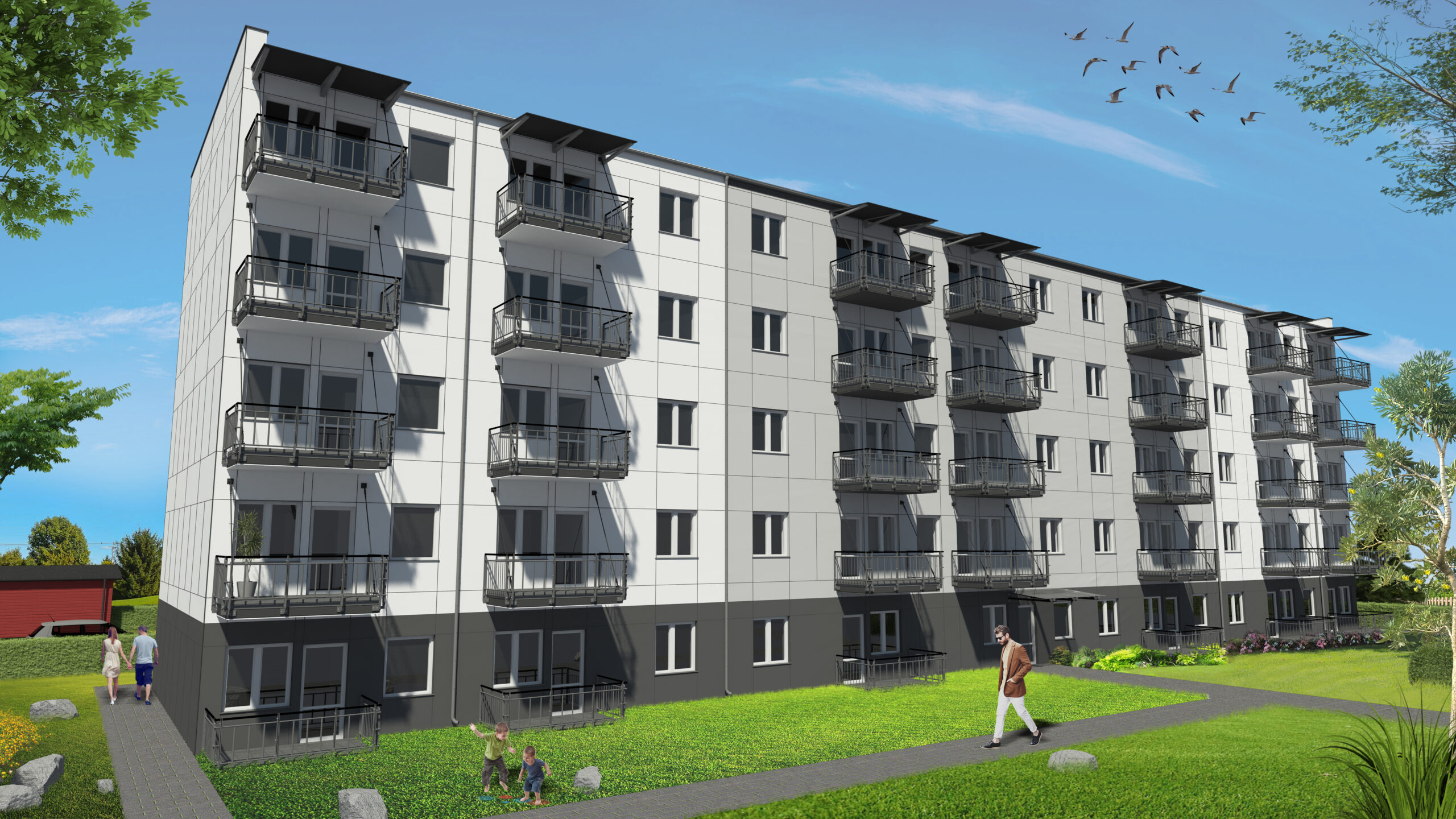 Unibep SA wygrał szwedzki przetarg publiczny, oferując budynek mieszkalny konkurencyjny pod względem jakości i ceny. Projekt został wykonany zgodnie z obowiązującymi regulacjami budowlanymi w Szwecji BBR oraz standardem umownym ABT 06 dla Generalnych Wykonawców.