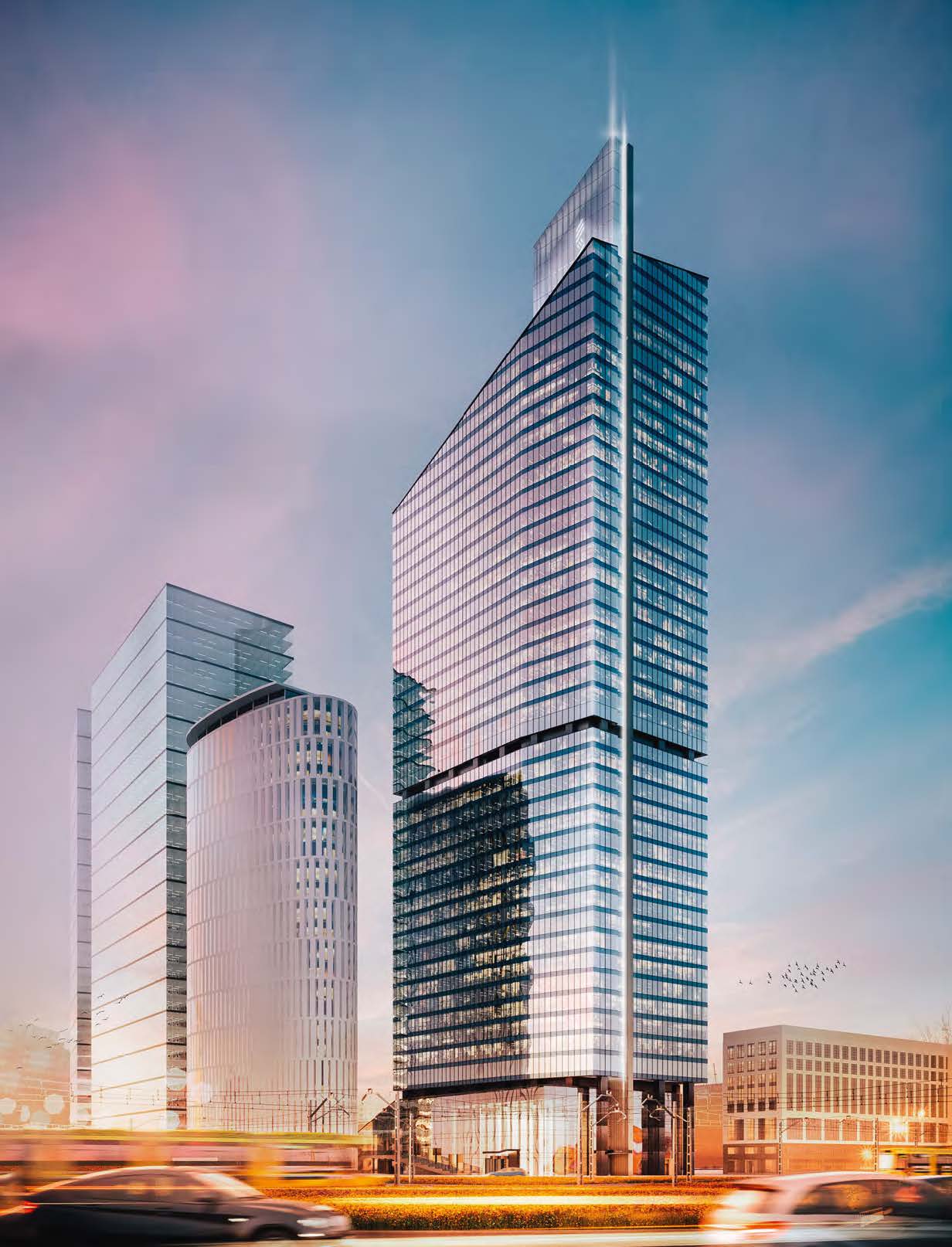 Przestrzenie pięter powtarzalnych zaprojektowane bez słupów pośrednich czy narożnych dadzą możliwość dowolnej aranżacji przestrzeni biurowych. Szklana elewacja o najwyższych parametrach termicznych oraz akustycznych zachwyci swoją prostotą i proporcjami.
