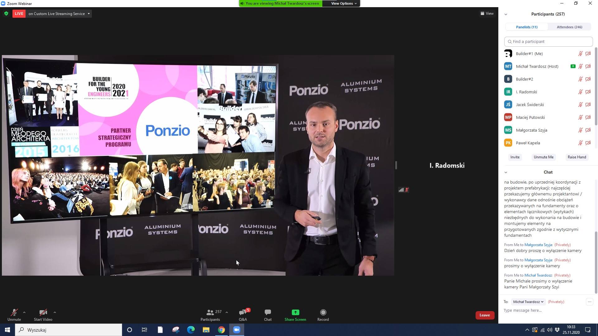 10.15 – 10.40 „Fasady, okna i drzwi aluminiowe w obiekcie budowlanym – rola, funkcje i wymagania” Paweł Kapela, Główny specjalista ds. wdrożeń projektów, Ponzio Polska Sp. z o.o.