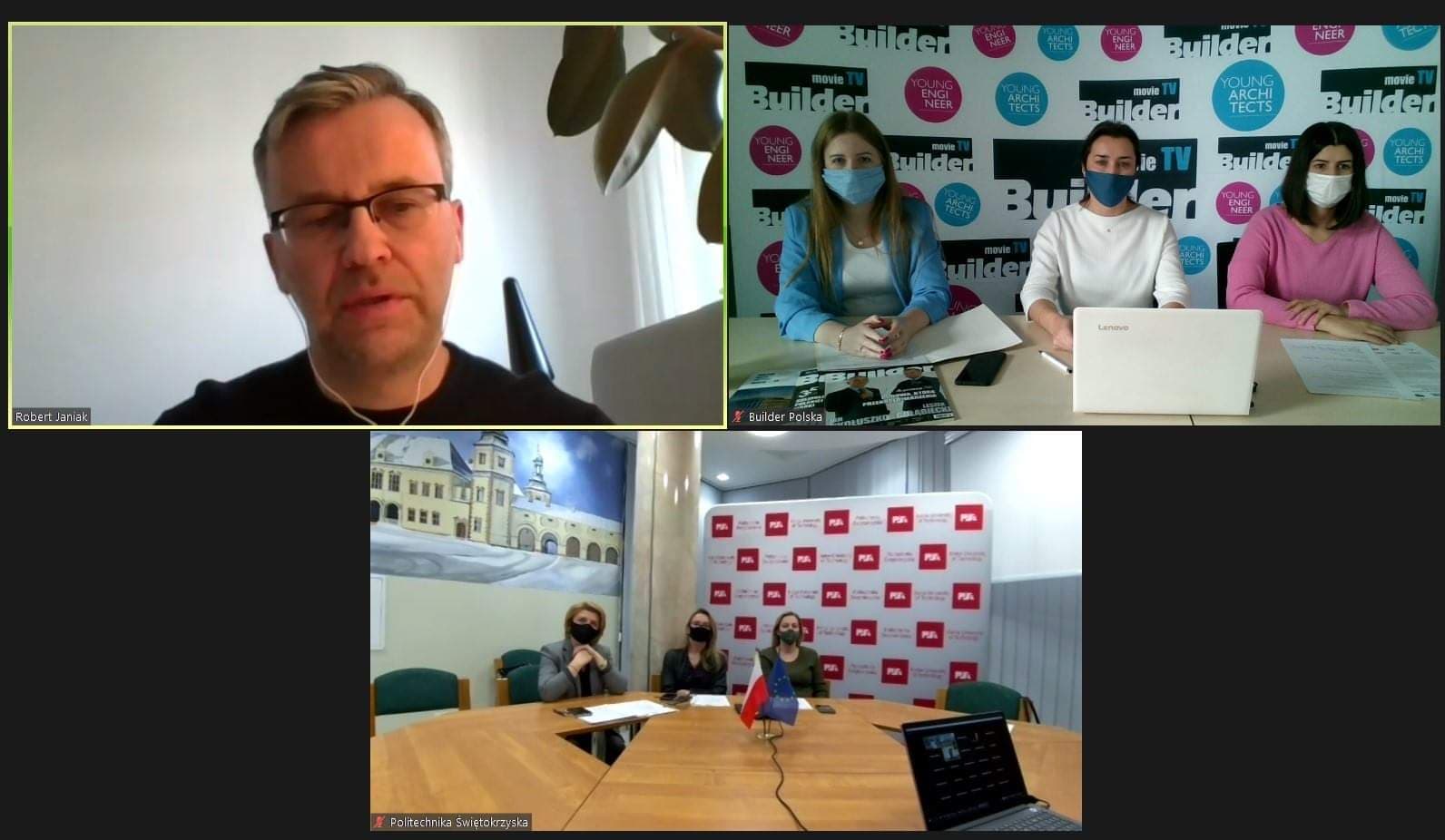 4 grudnia na Wydziale Budownictwa i Architektury Politechniki Świętokrzyskiej dla studentów kierunku Architektura odbył się w formule ON-LINE „Dzień Młodego Architekta”. Wydarzenie było organizowane wspólnie przez Wydział Budownictwa i Architektury Politechniki Świętokrzyskiej z miesięcznikiem „BUILDER” w ramach ogólnopolskiego programu edukacyjnego „Builder for the Young Architects”.