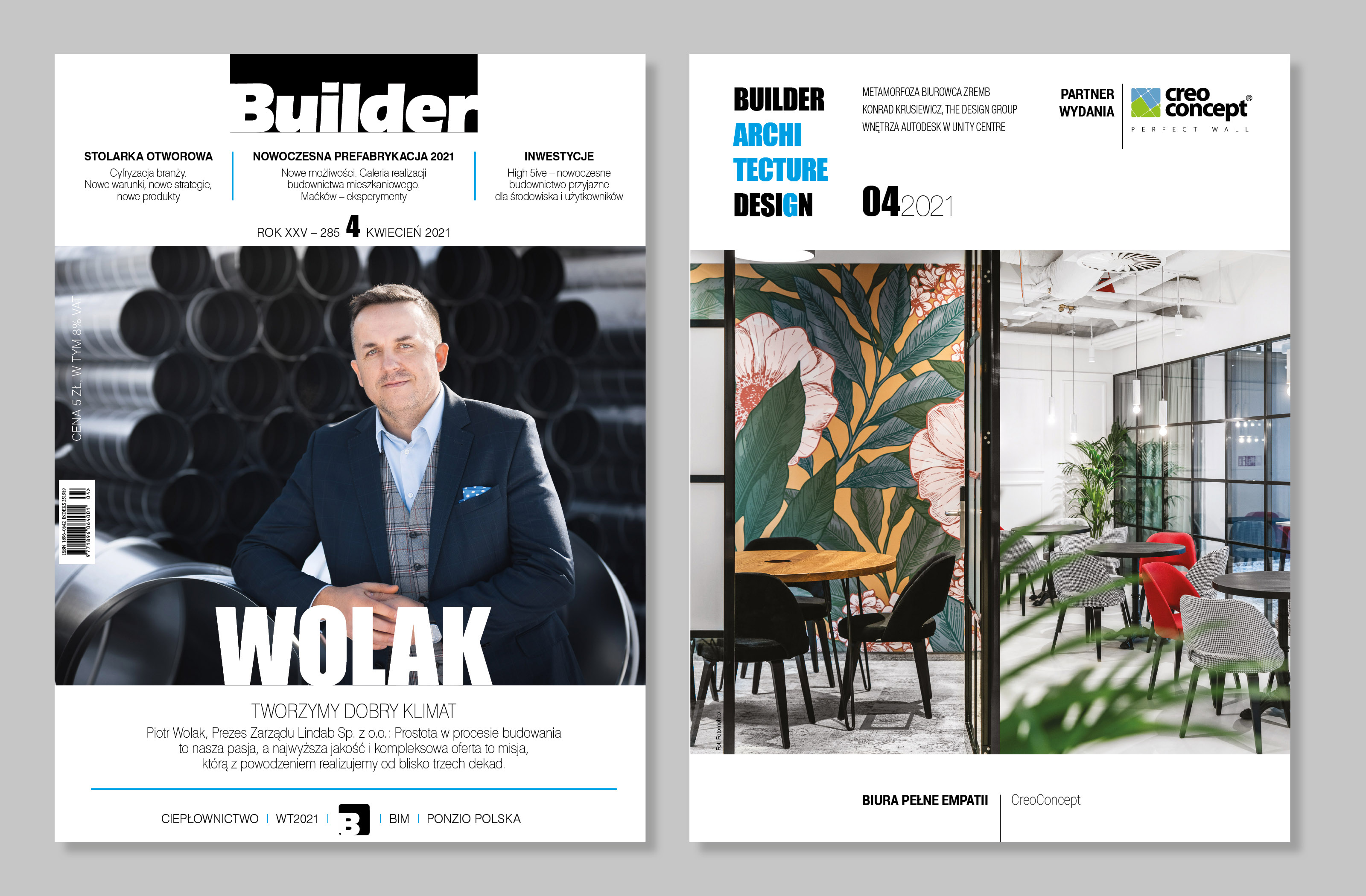 W tym numerze szczególnie polecamy wywiad ,,Tworzymy dobry klimat”. Rozmowa z Piotrem Wolakiem, Prezesem Zarządu Lindab. Z działu “ARCHITECTURE & DESIGN” polecamy artykuł ,,Biura pełne empatii” CREOCONCEPT.