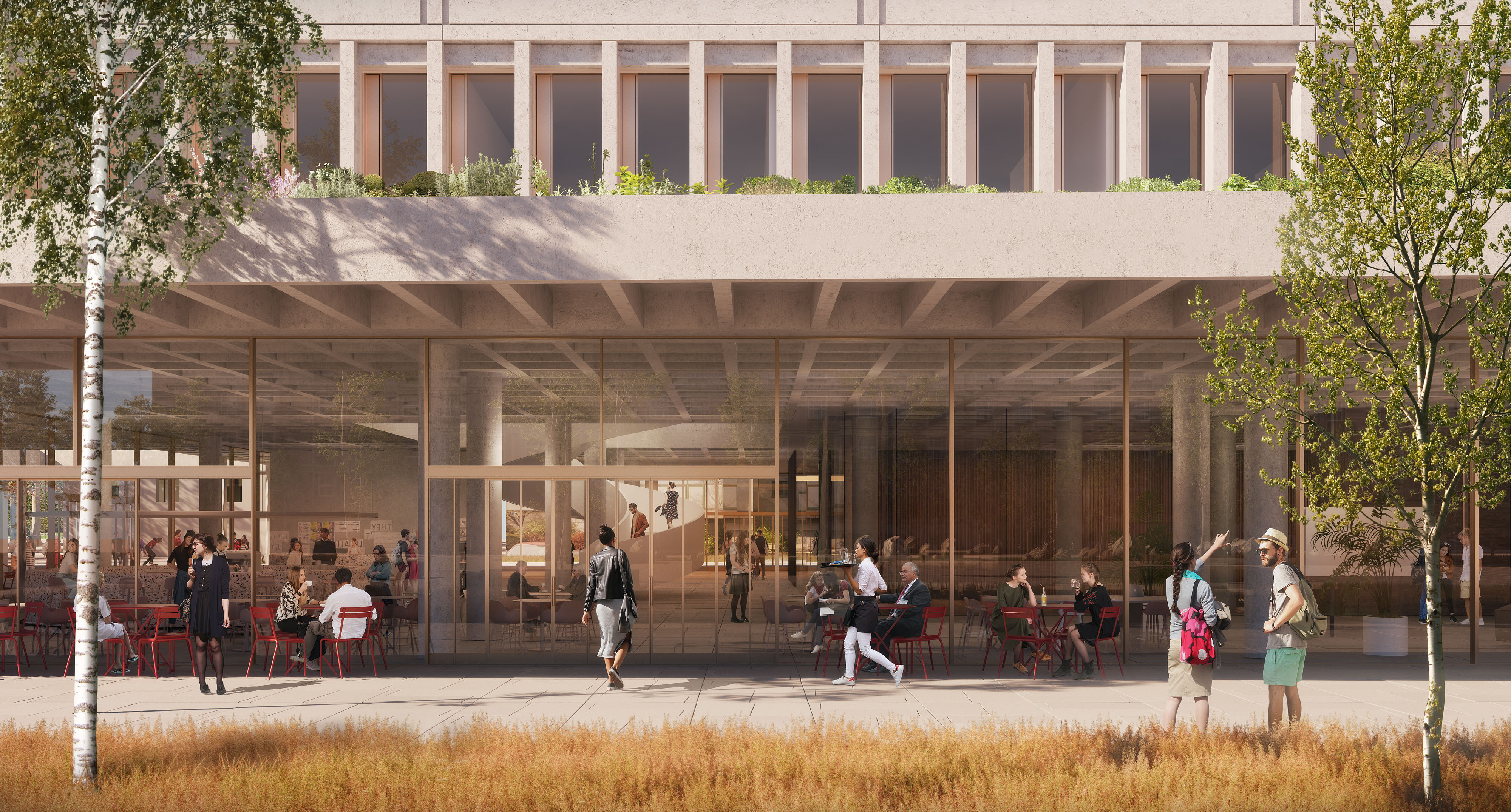 Dla pracowników naukowych przewidziano skrzydło budynku od strony przyszłego forum kampusu, w którym rozplanowano 20 dziesięcioosobowych jednostek z pomieszczeniami pracy wspólnej i indywidualnej, uzupełnionych o sale spotkań i zaplecza socjalne.