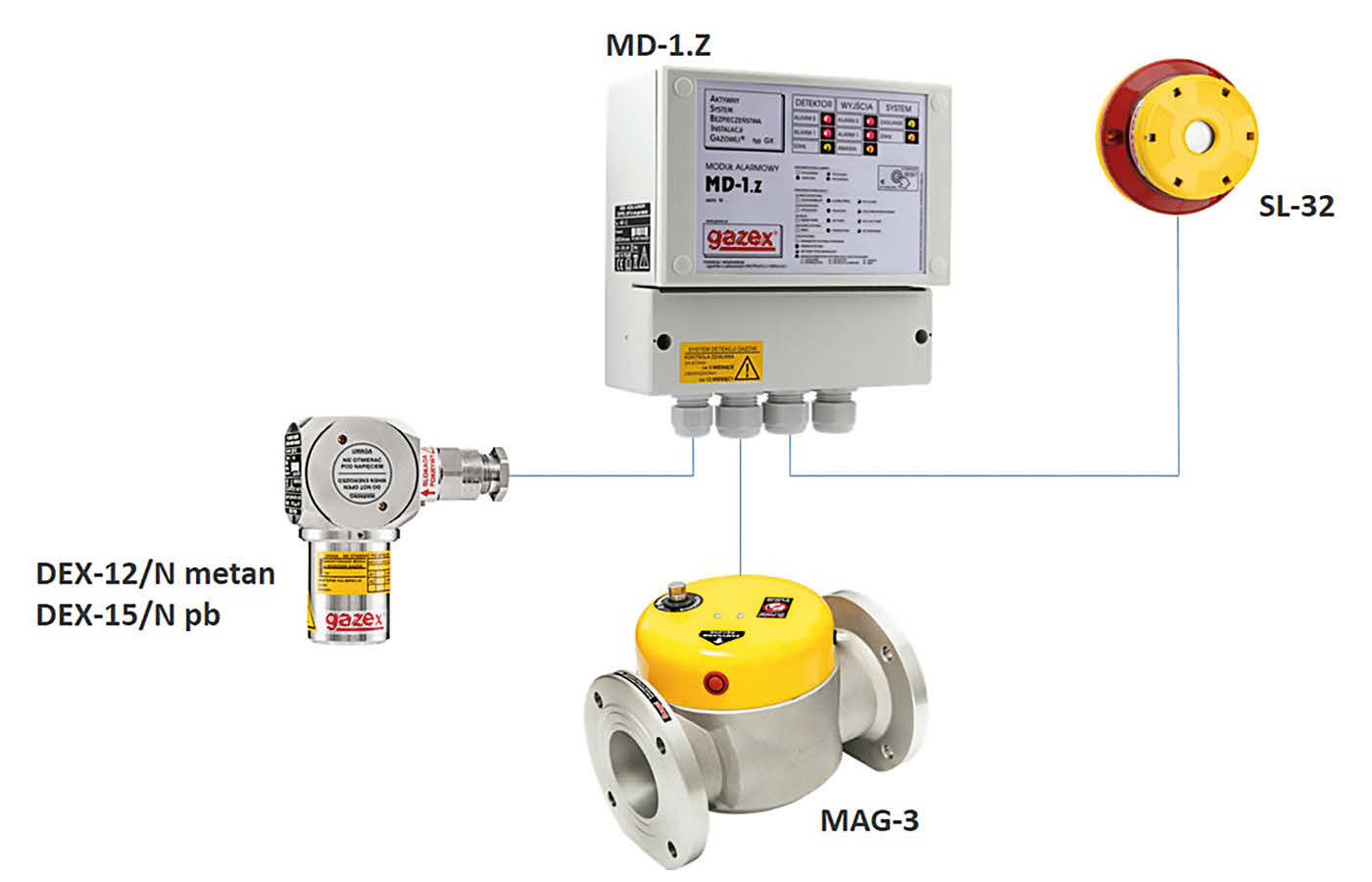 - zawór odcinający MAG-3 wraz z modułem MDD-ZW,