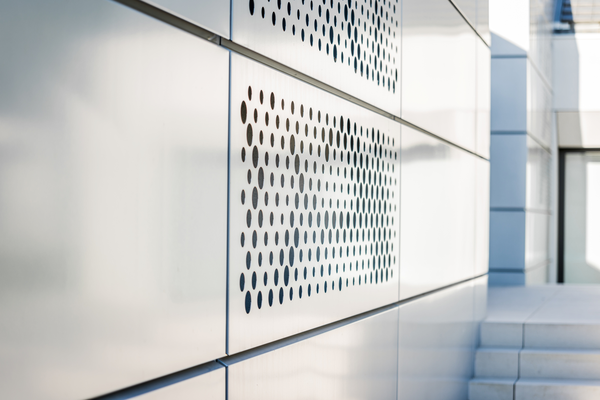 Szeroka gama kolorystyczna, duży wybór rodzajów powłok, dowolne kształty i wielkości perforacji, możliwość uzyskania orientacji pionowych i poziomych – to tylko niektóre cechy, które stanowią o uniwersalności rozwiązania. Dzięki zastosowaniu SKRIN elewacja w prosty i szybki sposób nabiera nowoczesnej formy, estetyka kasetonów pozwala na wykreowanie zupełnie nowego wizerunku remontowanego budynku bądź decyduje o wyjątkowej, modernistycznej formie nowych realizacji.