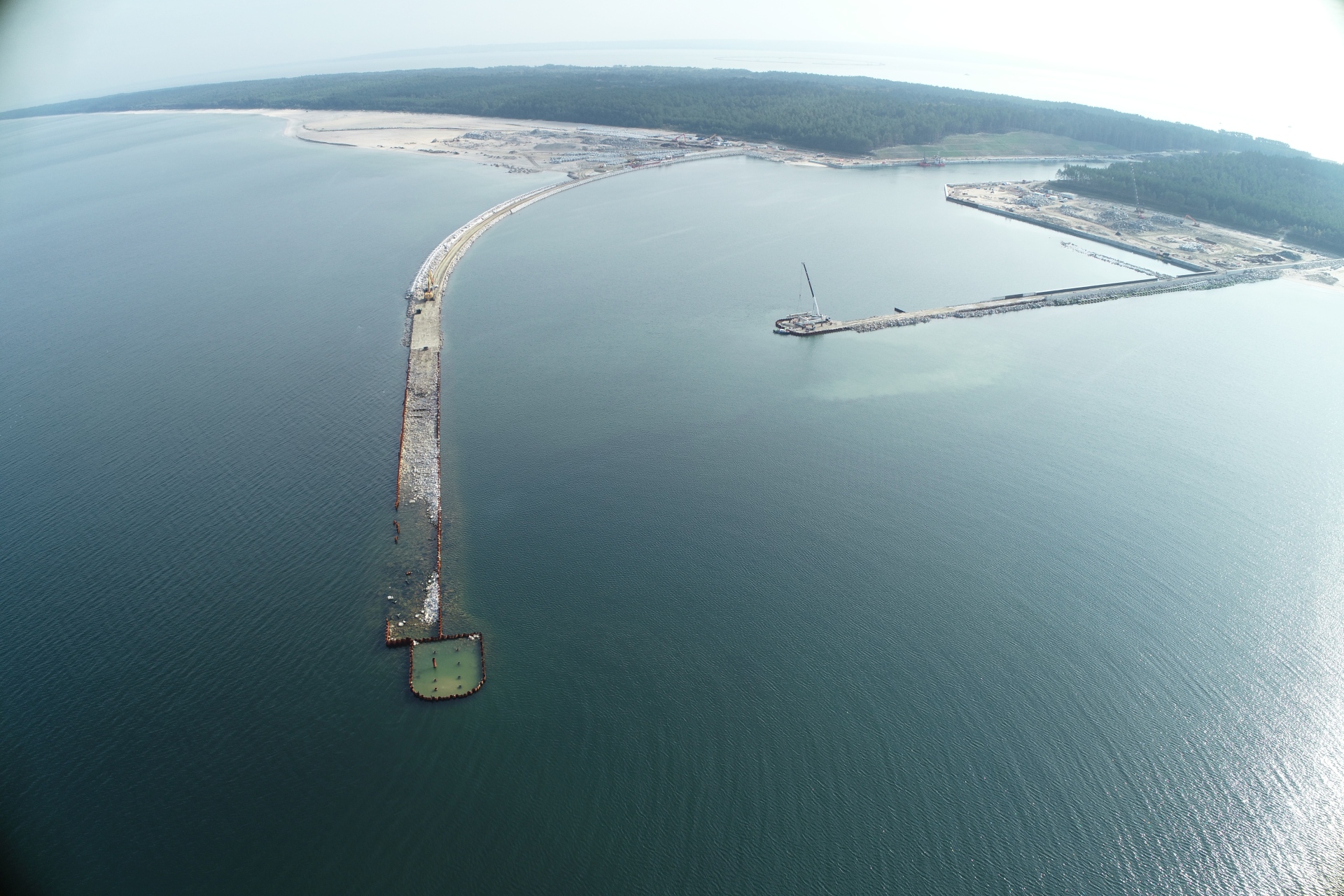 Właśnie montowane jest wyposażenie hydrotechniczne. Zakończono też już budowę oczepów nabrzeża w części południowej. Obecnie generalny wykonawca pierwszego etapu, konsorcjum NDI/Besix, skupił się natomiast m. in. na wykonywaniu oczepów nabrzeża w części północnej. Buduje też pochylnie dla zwierząt. Co ważne, zarówno na części południowej, jak i północnej po stronie zachodniej zamontowano już pachoły ścienne.Jak przekonuje wykonawca , prace idą sprawnie, zgodnie z harmonogramem.