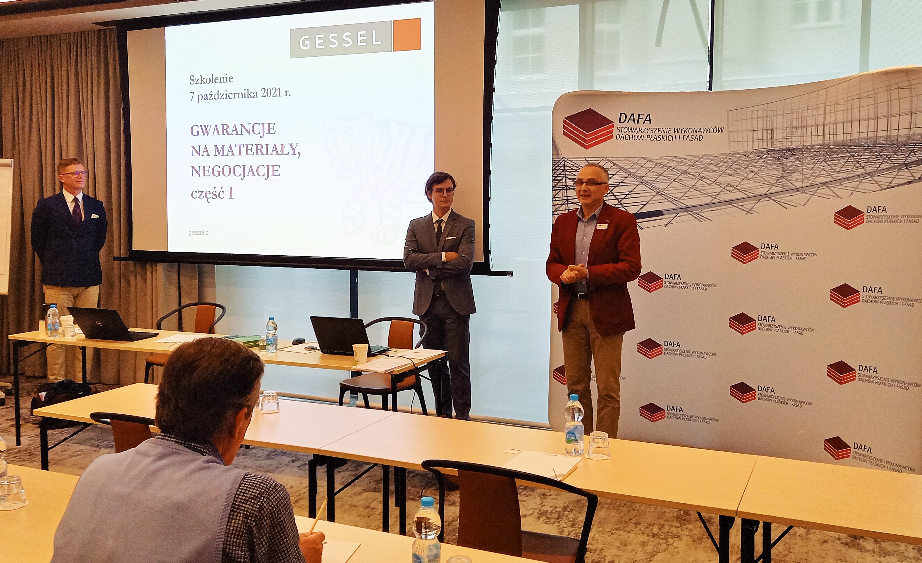 Szkolenie pt.: „Gwarancje na materiały, negocjacje. Executive summary” przeprowadziło dwóch wybitnych specjalistów reprezentujących, współpracującą ze Stowarzyszeniem warszawską kancelarię GESSEL: mec. Maciej Boryczko – radca prawny oraz mec. Piotr Tracz- adwokat.