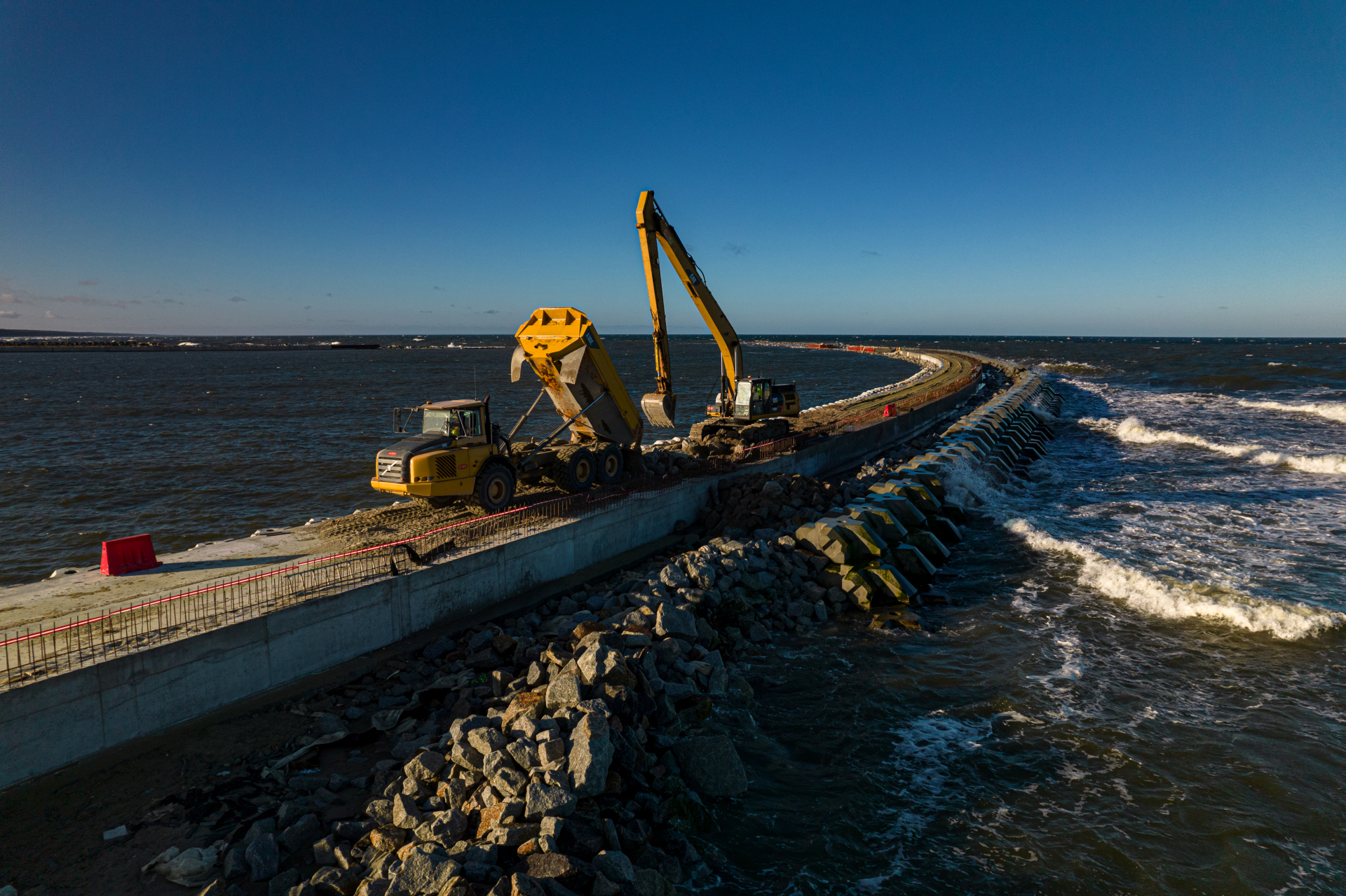 – Dostarczono już także ponad 519 tys. ton kamienia, co daje 94 proc. założonej ilości. Wyprodukowano 97 proc., czyli około 9,9 tys. sztuk prefabrykatów betonowych „x-block plus” – relacjonuje Jacek Szymański, dyrektor projektu z konsorcjum NDI/Besix. – Dzięki nim zmniejsza się ilość betonu na falochronach, skraca się czas montażu i zwiększa odporność na zmiany klimatyczne.