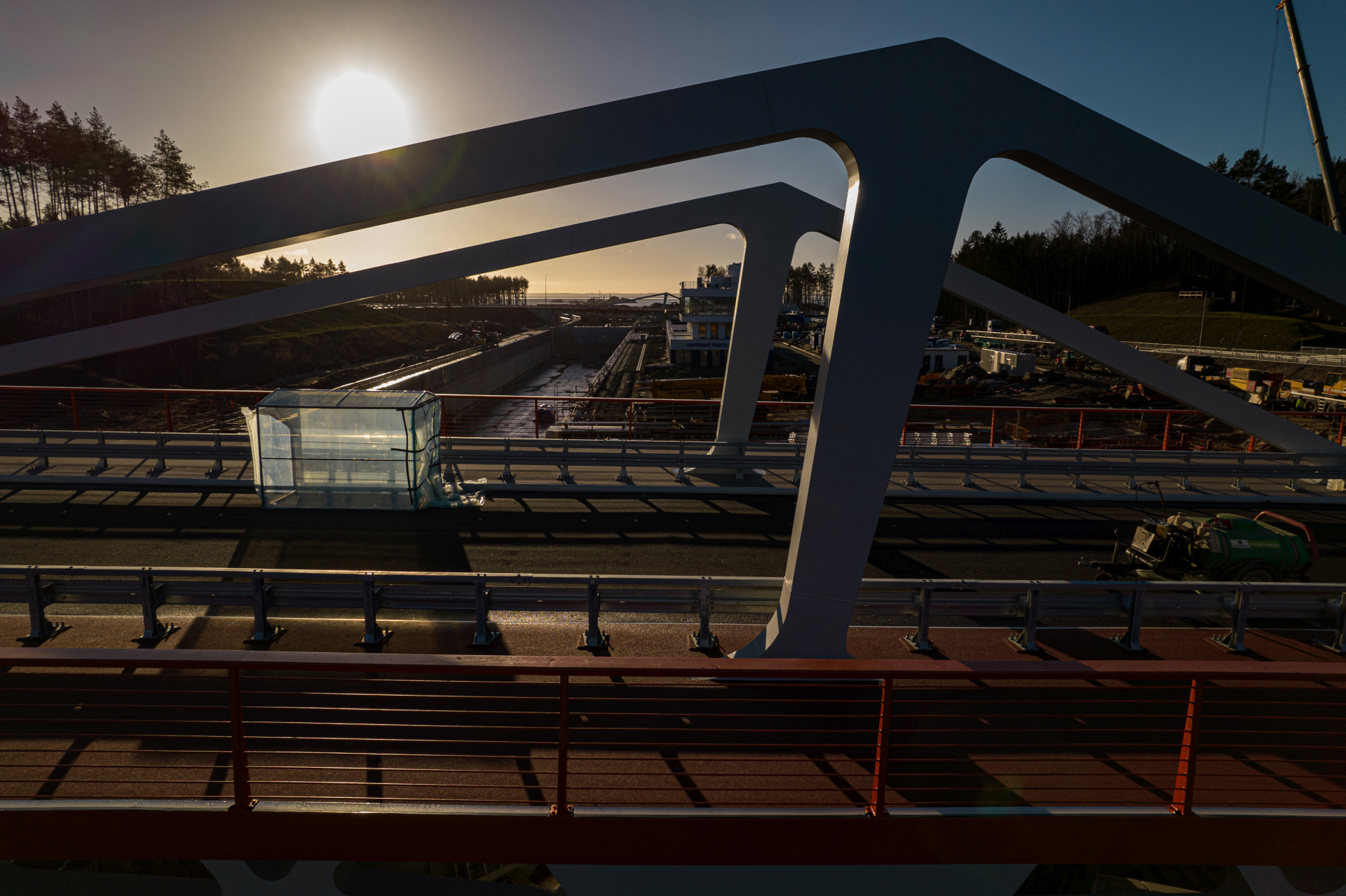 Natomiast łączna długość jednego z dwóch mostów na Mierzei Wiślanej (etap pierwszy) to ponad 60 m, a masa konstrukcji stalowej ustroju wraz z przeciwwagą to ok. 550 – 560 ton. Każdy z tych mostów składa się z 44 elementów, które wytworzone zostały w zakładzie prefabrykacji konstrukcji stalowych, dowiezione na budowę i jak klocki złożone w całość. Najcięższy z pojedynczych elementów ważył ponad 48 ton. Mimo tak specyficznej konstrukcji i masy, mosty zostały zmontowane co do milimetrów i wyważone co do kilogramów. Oba mosty północny i południowy mają już pozwolenie na użytkowanie. Od czerwca ubiegłego roku ruch odbywał się po moście południowym, obecnie kierowcy korzystają z mostu północnego.