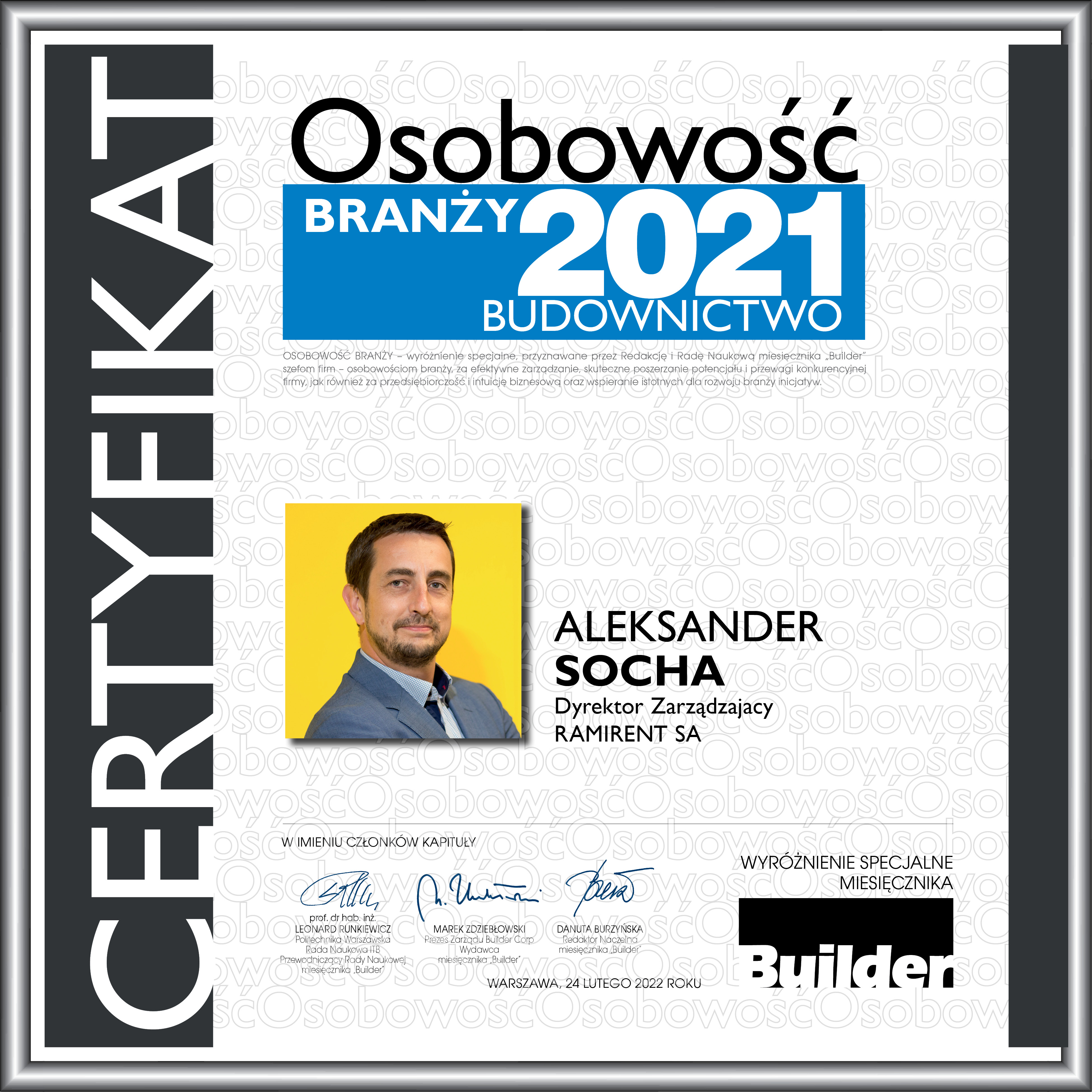 ALEKSANDER SOCHA – OSOBOWOŚĆ BRANŻY 2021