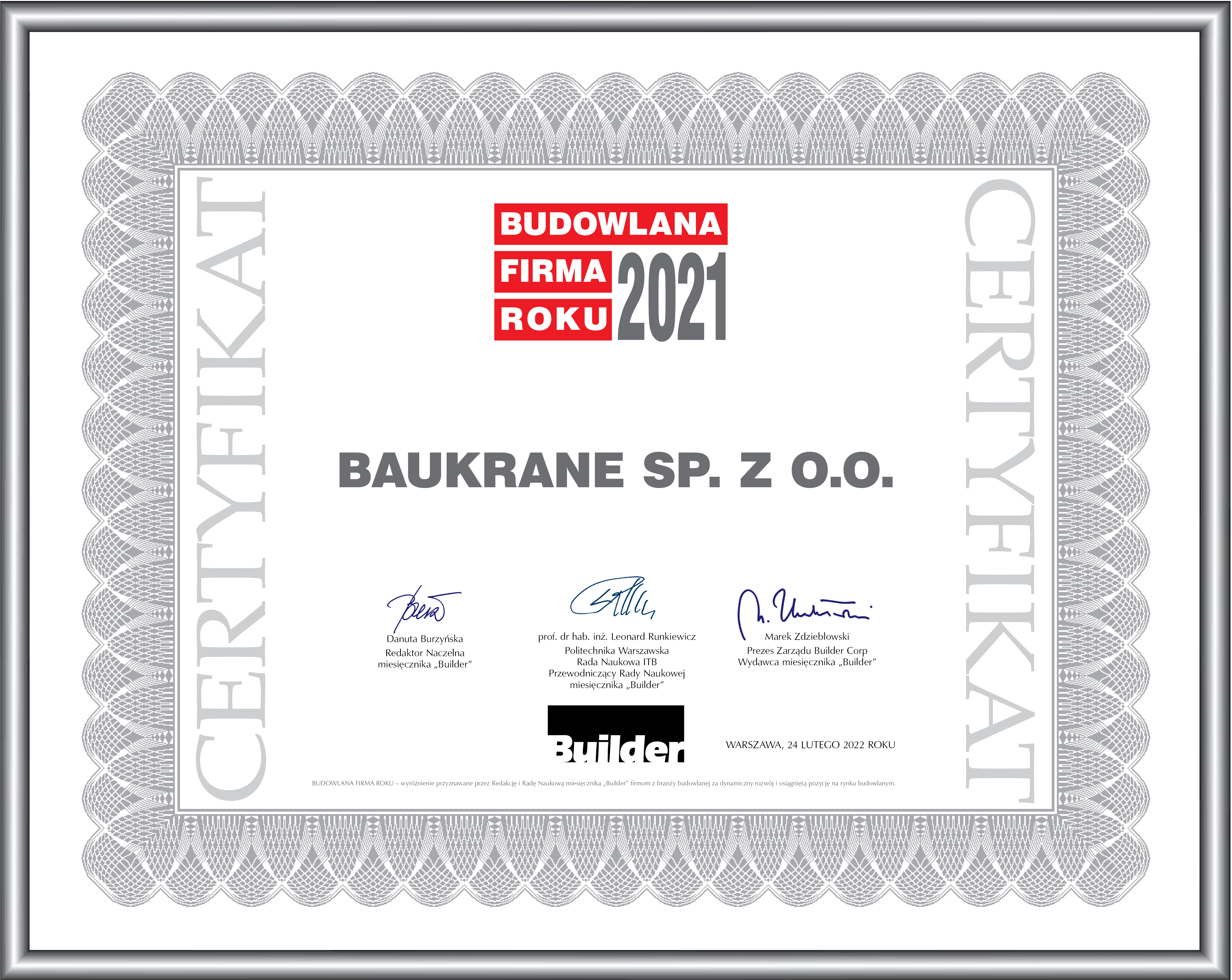 BAUKRANE SP. Z O.O. – BUDOWLANA FIRMA ROKU 2021