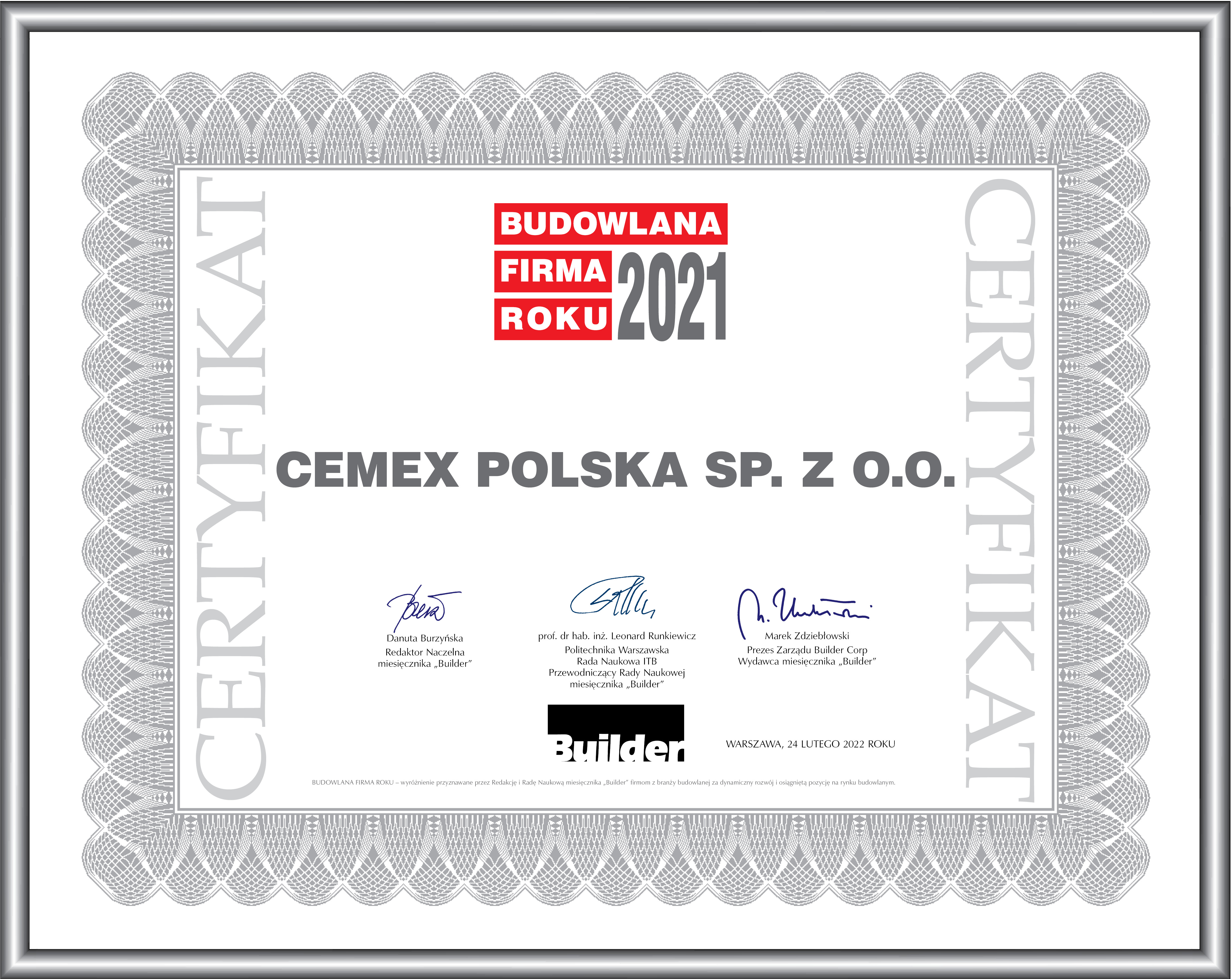 CEMEX POLSKA SP. Z O.O. – BUDOWLANA FIRMA ROKU 2021