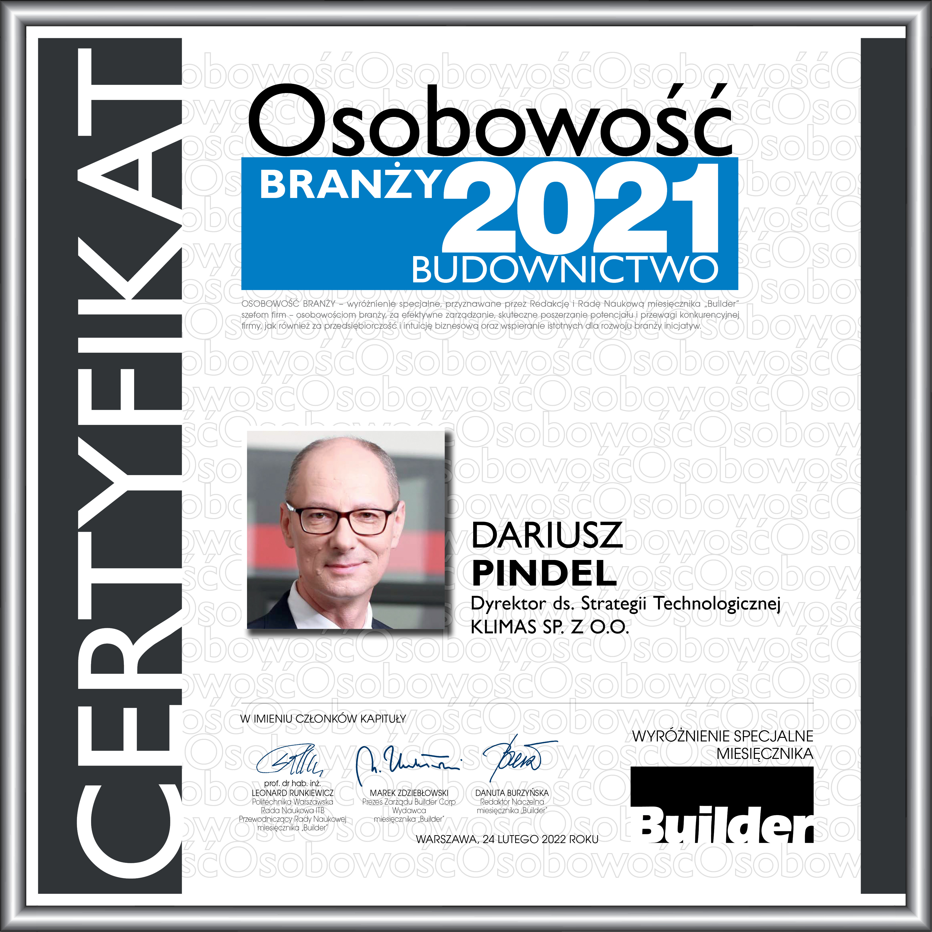 DARIUSZ PINDEL – OSOBOWOŚĆ BRANŻY 2021