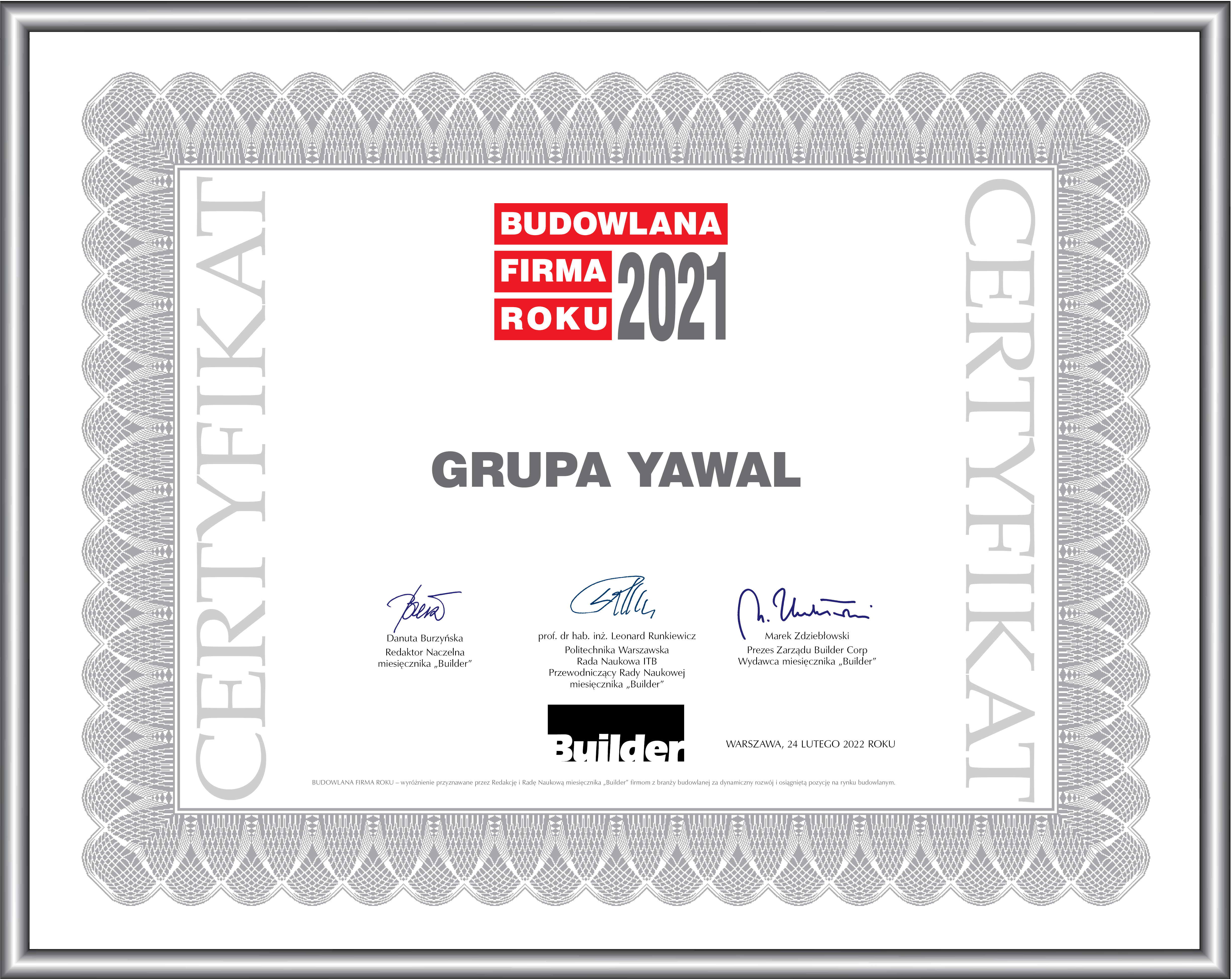 GRUPA YAWAL – BUDOWLANA FIRMA ROKU 2021
