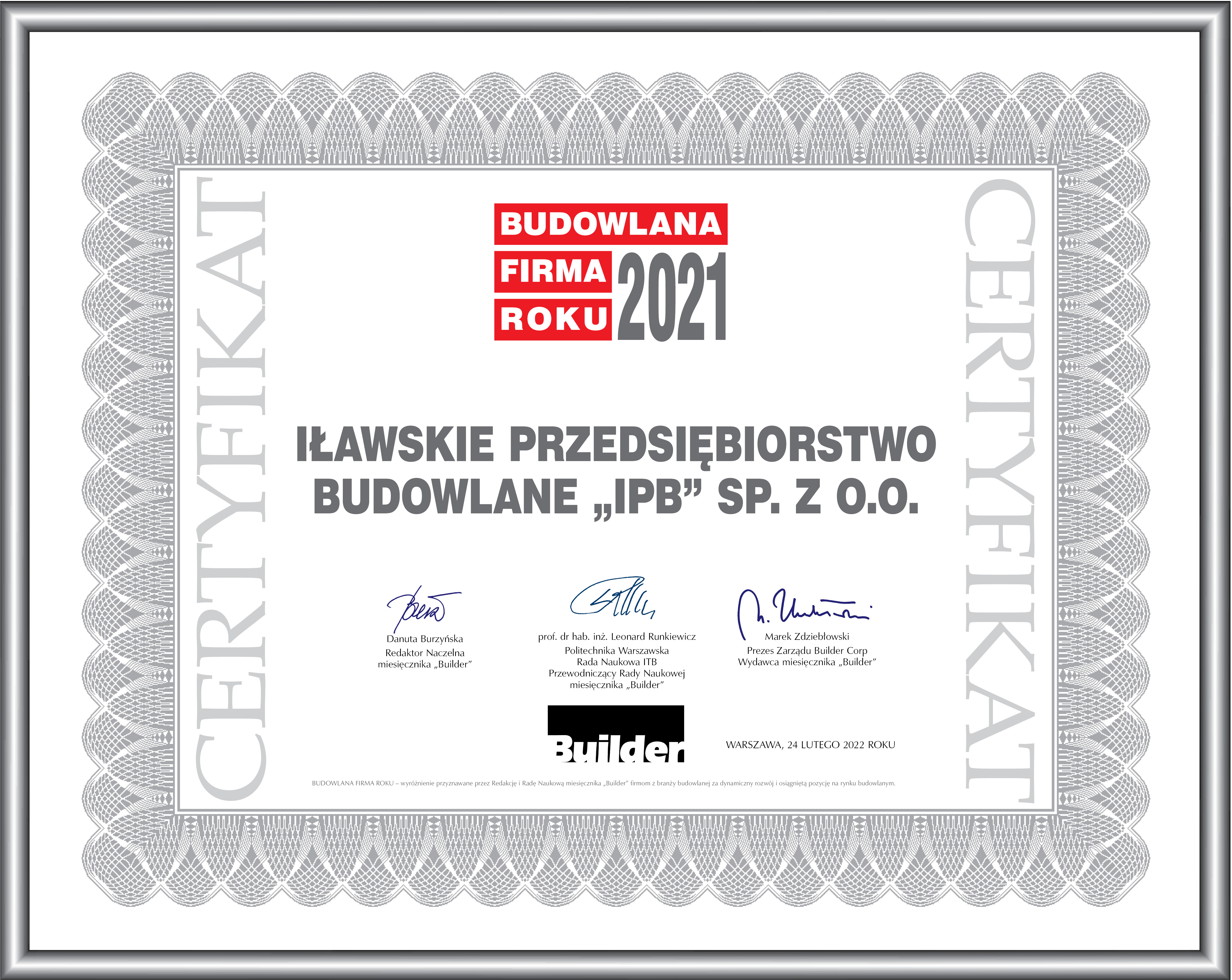 IŁAWSKIE PRZEDSIĘBIORSTWO BUDOWALNE „IPB” SP. Z O.O. – BUDOWLANA FIRMA ROKU 2021