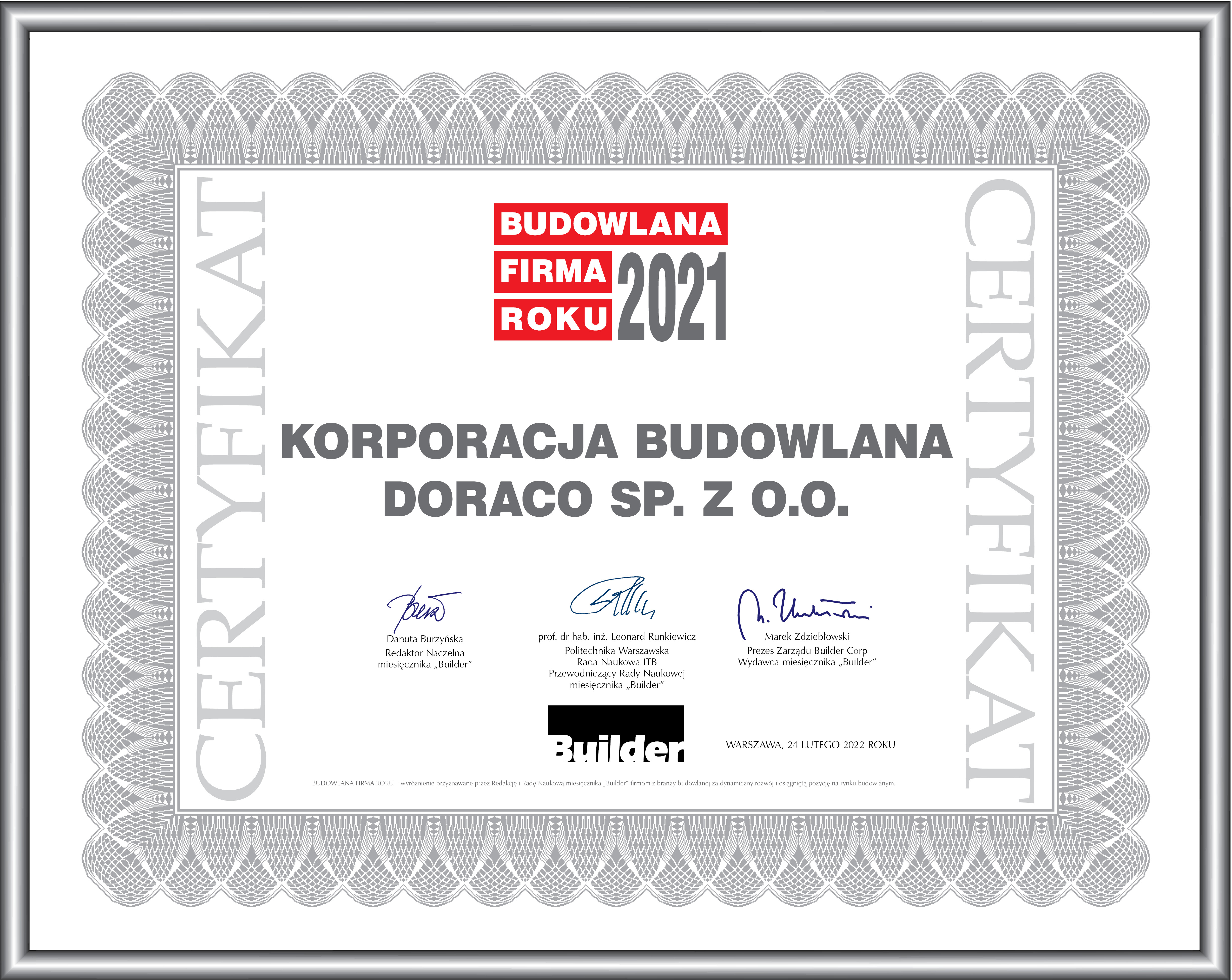 KORPORACJA BUDOWLANA DORACO SP. Z O.O. – BUDOWLANA FIRMA ROKU 2021