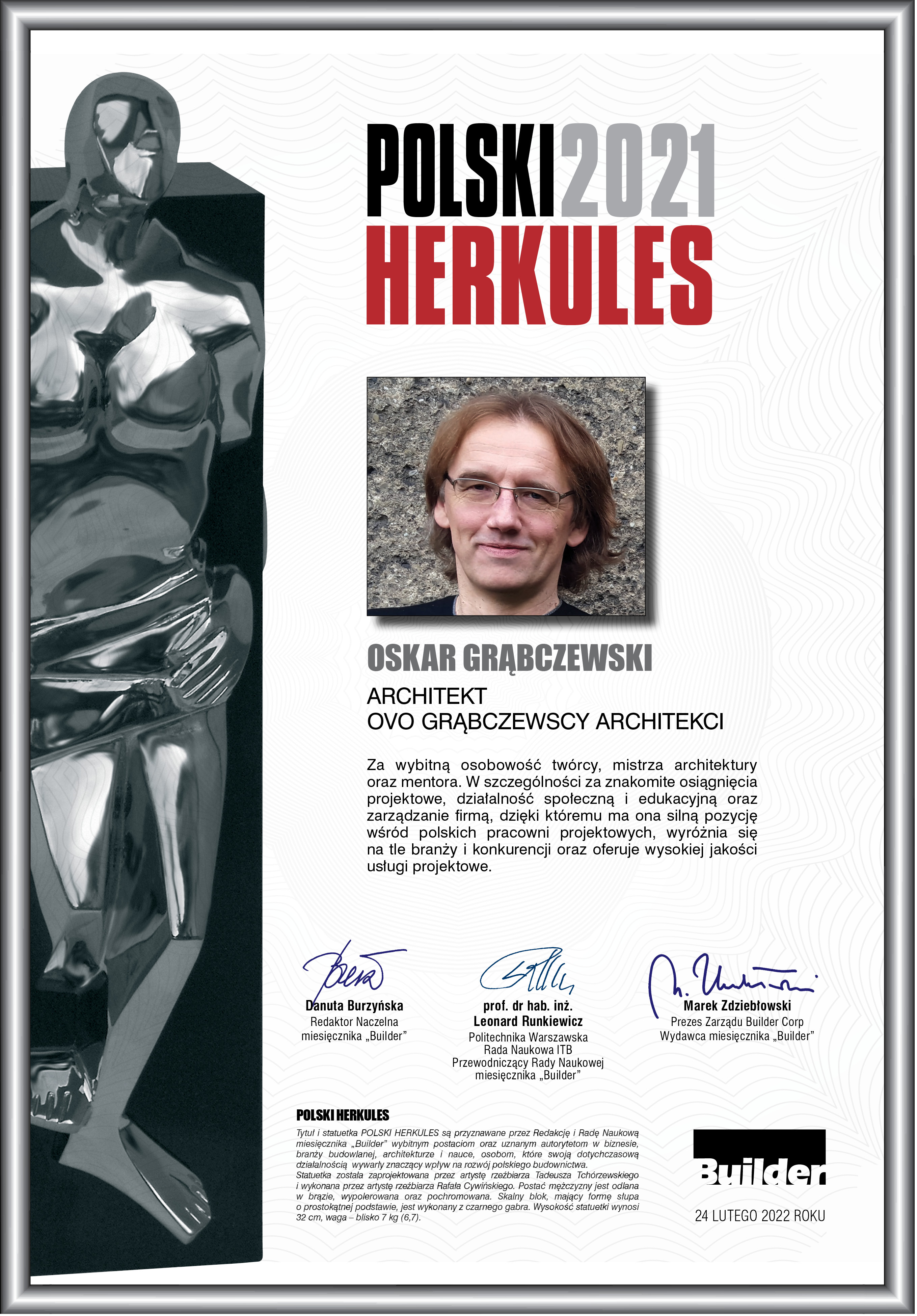 OSKAR GRĄBCZEWSKI Architekt i założyciel OVO Grąbczewscy Architekci. Architekt, urbanista, absolwent Politechniki Śląskiej w Gliwicach i stypendysta IBA Emscher Park.