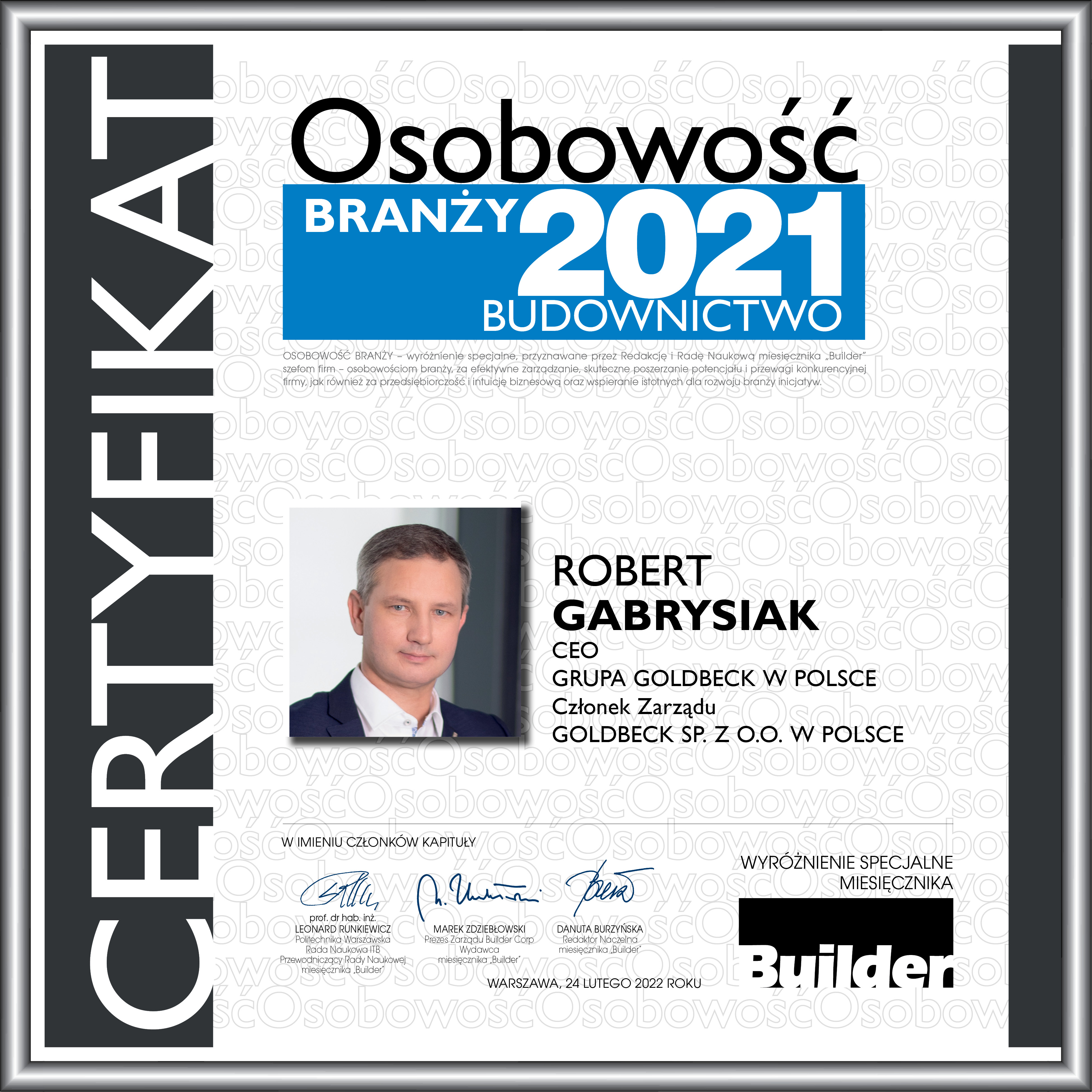 ROBERT GABRYSIAK – OSOBOWOŚĆ BRANŻY 2021