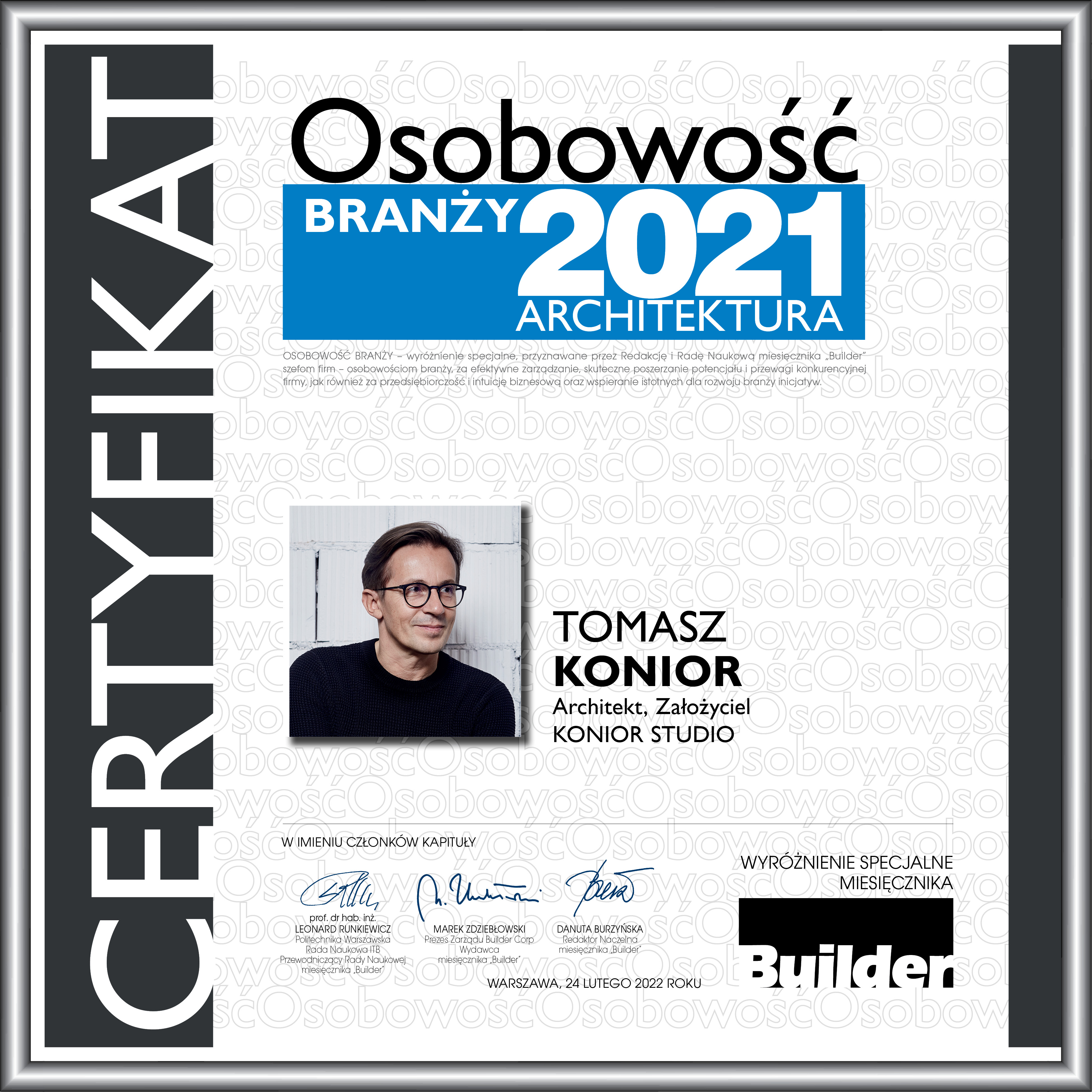 TOMASZ KONIOR – OSOBOWOŚĆ BRANŻY 2021