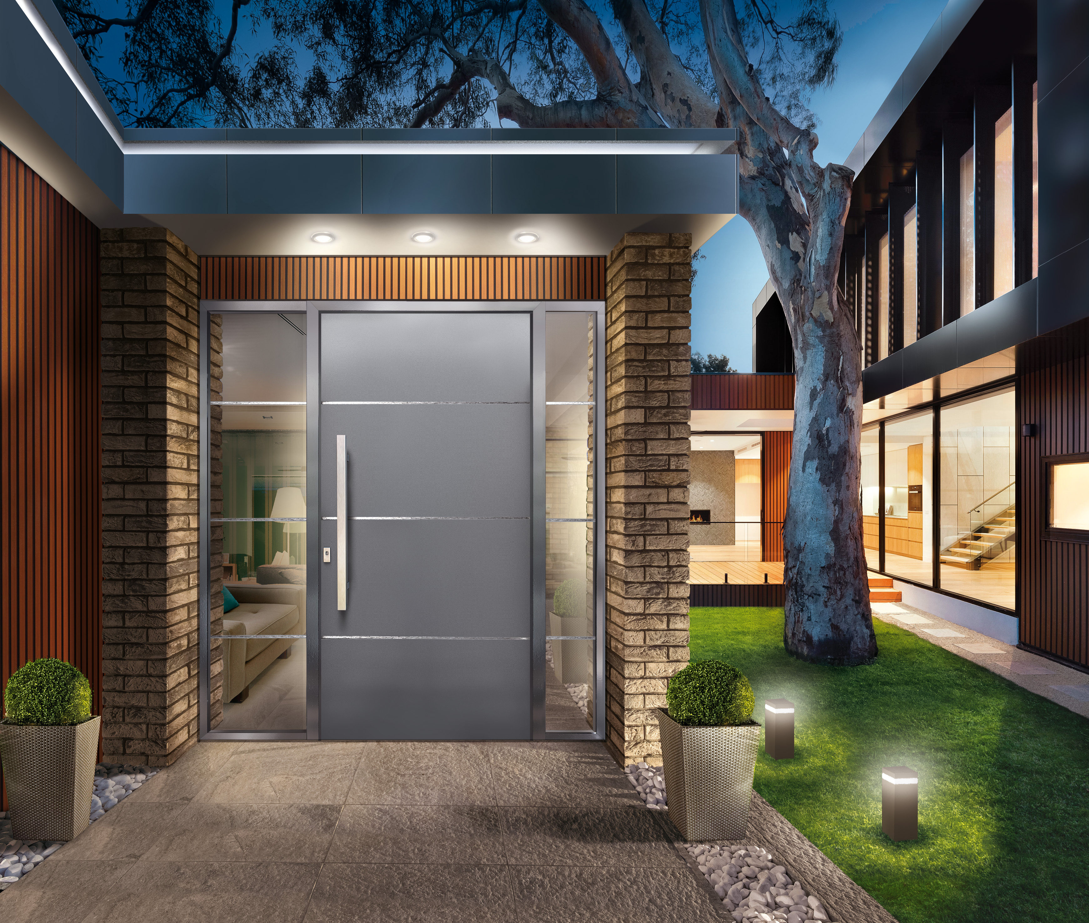 Dostępne są trzy typy konstrukcji – w zależności od zastosowanych wypełnień: drzwi panelowe (nakładka obustronna), panel wsadowy oraz wypełnienie szklane. Najbardziej wymagającym rozwiązaniem, dla którego opracowano specjalną konstrukcję z szeregiem rozwiązań redukujących w znacznym stopniu efekt bimetalu, są drzwi panelowe. Drzwi wejściowe narażone są na bezpośrednie oddziaływanie słońca lub mrozu. Zastosowanie rozwiązania antybimetalicznego zapobiega odkształceniom pod wpływem skrajnych temperatur i zapewnia prawidłowe funkcjonowanie okuć drzwiowych. Ponadto system wyróżnia się najwyższą izolacyjnością termiczną spośród rozwiązań drzwiowych o współczynniku Ud od 0,67W/(m2K)). Dzięki zaawansowanemu systemowi podwójnego doszczelnienia centralnego osiąga też znakomite parametry wodoszczelności i infiltracji powietrza. Zastosowano w nim okucia oraz listwy przyszybowe o podwyższonej odporności na włamanie w klasach RC2 i RC3. Duże gabaryty drzwi o ciężarze skrzydła do 200 kg, różne warianty tworzenia naświetli bocznych – to kolejne cechy, które pozwalają nadać drzwiom wejściowym pożądany wizerunek. Ciekawy efekt jednolitej, gładkiej powierzchni drzwi uzyskano dzięki zlicowaniu panelu i ościeżnicy. O estetykę zadbano tu w każdym detalu: zamek drzwiowy został zlicowany z uszczelką centralną, odwodnienia ukryto. Wszystkie wymienione cechy przekładają się na komfortowe użytkowanie drzwi przez domowników. Natomiast jeśli chodzi o prefabrykację, system został tak skonstruowany, że jego montaż jest prosty i intuicyjny.