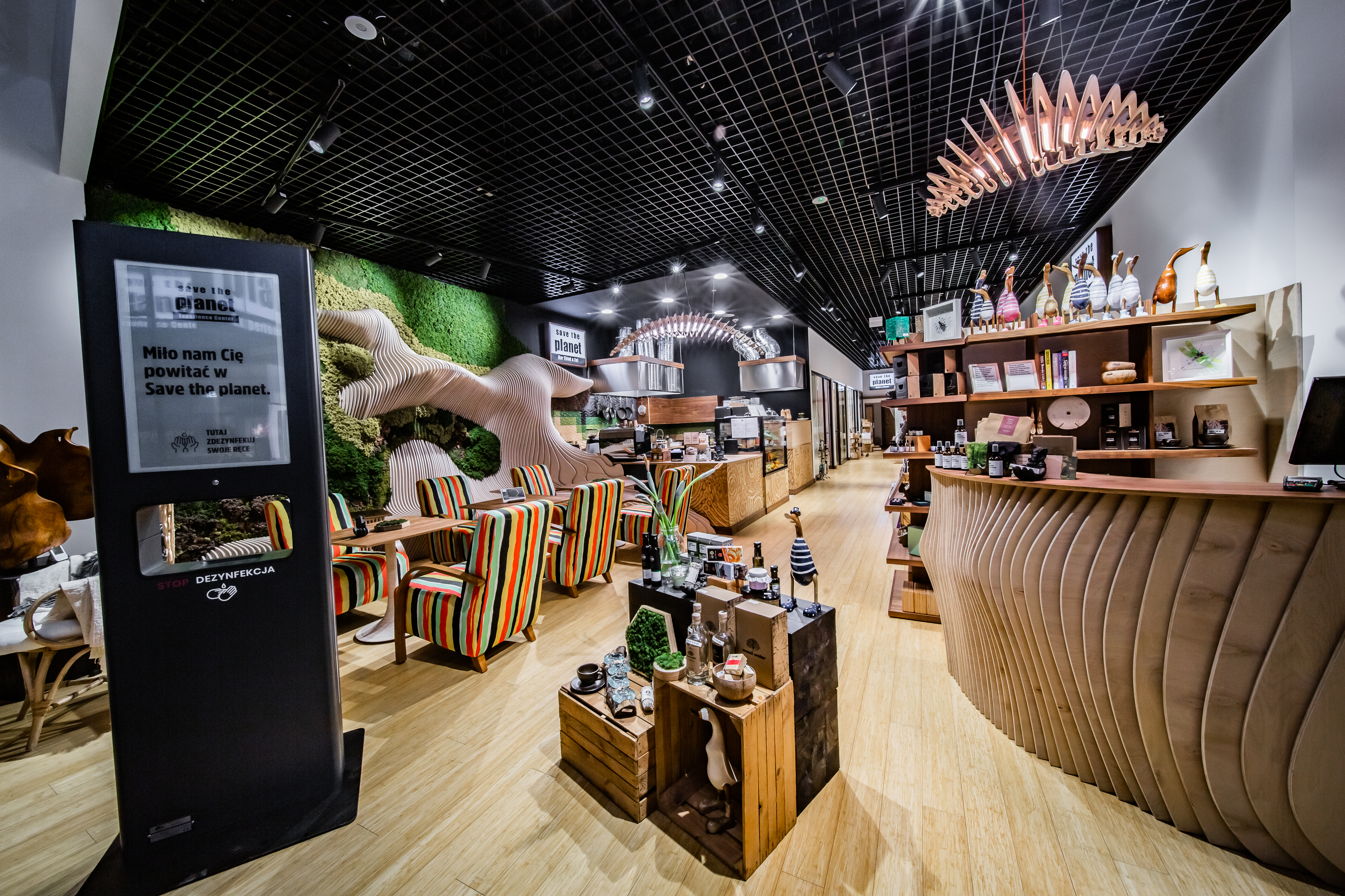 – Posiadanie certyfikatu Planet Friendly na najwyższym poziomie Loving jest czymś naturalnym dla miejsca, w którym tak dużą wagę przywiązujemy do ekologii i zdrowego trybu życia – wyjaśnia Dariusz Stasik, właściciel Save The Planet Experience Center, starannie zaprojektowanej przestrzeni, gdzie można zjeść zdrowy i wartościowy posiłek, wybrać się na slow shopping, znaleźć ekologiczne i naturalne produkty spożywcze, kosmetyki, odzież, odwiedzić strefę home & decor a także wziąć udział w warsztatach, np. jogi. – Postawiliśmy w nim na biofiliczne rozwiązania. Wiadomo przecież, że w otoczeniu zieleni ludzie są zrelaksowani, mają lepsze samopoczucie. Save The Planet Experience Center jest także przyjazne dla zwierząt. Stworzyliśmy ponadto komfortowe warunki dla ludzi z nadwrażliwością sensoryczną i autyzmem, ponieważ w tle słychać tylko odgłosy indonezyjskiej dżungli i śpiew ptaków. Podłoga w lokalu została wykonana z bambusa, który jest najszybciej odnawialną trawą.