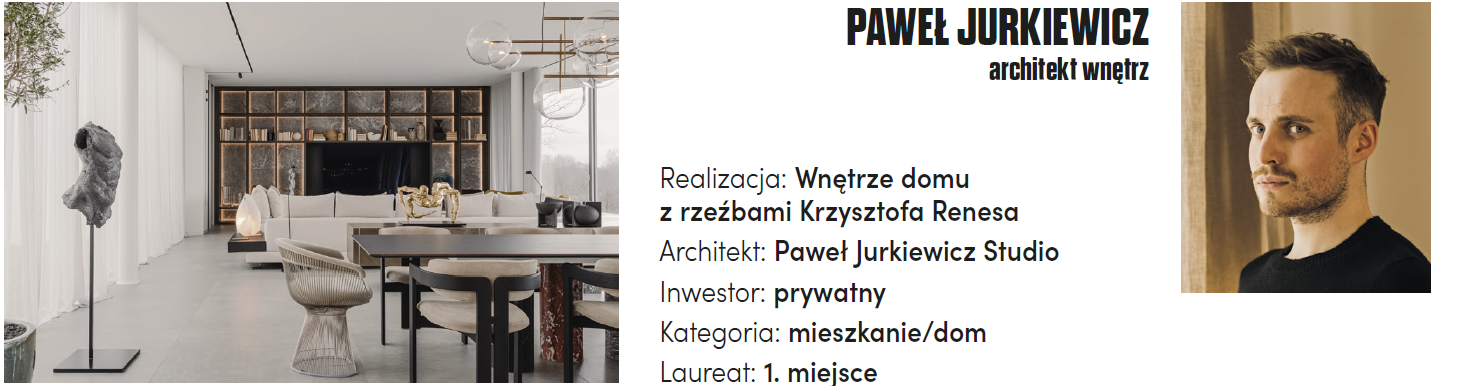 Obraz czy rzeźba to bez wątpienia dobro luksusowe, snobizm w najwyższej formie, ale i w najlepszym tonie. Sztuka we wnętrzach sprawia, że są one czymś więcej niż tylko zbiorem wyselekcjonowanych przedmiotów i materiałów. Trudno jest dyskutować, czy treść dzieła powinna pasować do otoczenia, w którym się znajduje. Jestem natomiast przekonany, że wszystko podlega prawu proporcji i skali. Sztuka to też wielkie emocje, które sprawiają, że przestrzeń, w której się znajdujemy, jest unikatowa i zatrzymuje naszą uwagę na dłużej, zapada w pamięć. Takim też kluczem posługiwaliśmy się w projekcie wnętrz domu nad Narwią. Wybraliśmy rzeźby, o których po prostu nie mogliśmy zapomnieć. Następnie wraz z artystą Krzyśkiem Renesem ustaliliśmy odpowiednią ich wielkość oraz skalę i materiał postumentów, na których spoczywają.