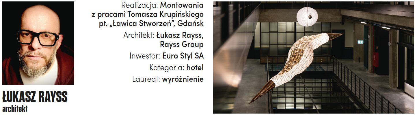 Jako wielki entuzjasta Waltera Gropiusa, jego niezgody na brzydotę i udanej próby łączenia artystów i rzemieślników w procesie tworzenia obiektów budowlanych, staram się szukać miejsca dla sztuki w każdym ze swoich projektów. Dlatego uważam, że wyłącznie interdyscyplinarne zespoły projektowe, których idee przenikają się pomiędzy specjalnościami, potrafią tworzyć obiekty funkcjonalne i piękne zarazem. Istotą sztuki w takim rozumieniu nie jest jej indywidualizm, samotność i bezwstydny ekshibicjonizm, lecz przenikanie się z architekturą w nierozerwalnej symbiozie dążącej do ideału, w którym każdy użytkownik zrozumie, że jedno bez drugiego istnieć nie może. To, mam nadzieję, udało się nam uzyskać w projekcie Montowni.
