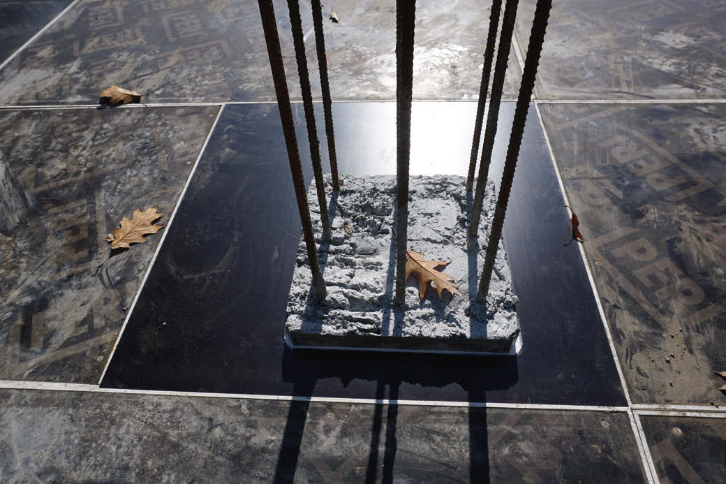 O pomoc i współpracę poprosiłem Prezesa firmy PERI Michała Wrzoska. Bardzo liczyłem na jego zainteresowanie i udział w działaniu, w profesjonalnym przygotowaniu sprzętu do zawsze niezwykle dla mnie ważnych „betonów”. Udało się. Poznaliśmy się kilka lat wcześniej, po wspólnej realizacji kilkutonowej betonowej rzeźby mojego autorstwa na konferencję Dni Betonu. Poznałem wówczas możliwości PERI, ich doskonałe szalunki, ale przede wszystkim zespół fantastycznie zaangażowanych ludzi, którym wówczas kierował, w oddziale katowickim, Piotr Borucki, obecnie główny inżynier. Projekt szalunków przygotował wtedy Grzegorz Byrka z wrocławskiego oddziału firmy, z którym zaprzyjaźniłem się już na pierwszym spotkaniu roboczym w mojej pracowni w Krakowie. Szalunki zbudował w Jaworznie kierownik CL Robert Tiszbierek. Były genialne. A betonowaliśmy wtedy wszyscy własnoręcznie, wspólnie. Nasza praca od samego początku była angażująca i absorbująca. Zwracała uwagę szczególna atmosfera panująca w ich zespole, zaskakująca więź i solidarność w absolutnie profesjonalnym wydaniu – znana mi z niemieckich budów, które odwiedzałem podczas swojej pracy w biurach projektowych doskonałych architektów: profesora Karljosefa Schattnera w Eichstätt i profesora Waltera Henna w Monachium. Przywiezioną przez moją żonę Madzię zupę rozdzieliliśmy pomiędzy członków całej ekipy, co zwieńczyło niezwykłą atmosferę powstałą podczas wspólnej pracy z zespołem PERI. Zapamiętaliśmy się nader pozytywnie. I tym razem współpracowałem z Grzesiem Byrką, wykonującym projekt szalunków do Stryszawy. Grzegorz zaproponował dwa alternatywne rozwiązania, z których Prezes Michał Wrzosek wskazał systemy dla słupów DOMINO i deskowań stropów z lekkich aluminiowych paneli SKYDECK. Robert Tiszbierek w Jaworznie system DOMINO uzupełnił o wykonane specjalnie dla tej budowy deskowania ze sklejki z dreikantami, a system SKYDECK – o podobnie wykonane burty stropów. Robert deski wykonał perfekcyjnie, do tego stopnia, że wykonawca prac betonowych stwierdził, że jeszcze nigdy nie dysponował tak przygotowanym sprzętem. Obaj, w pełni zaangażowani, zadbali zdalnie o szczegóły nawet w momencie betonowania. Na miejscu w Stryszawie betonowanie nadzorował Artur Lewiński, a jego brat, Kamil Lewiński, inżynier budów w Trójmieście, pomagał mi dzień wcześniej doginać ostatnie strzemiona słupów.