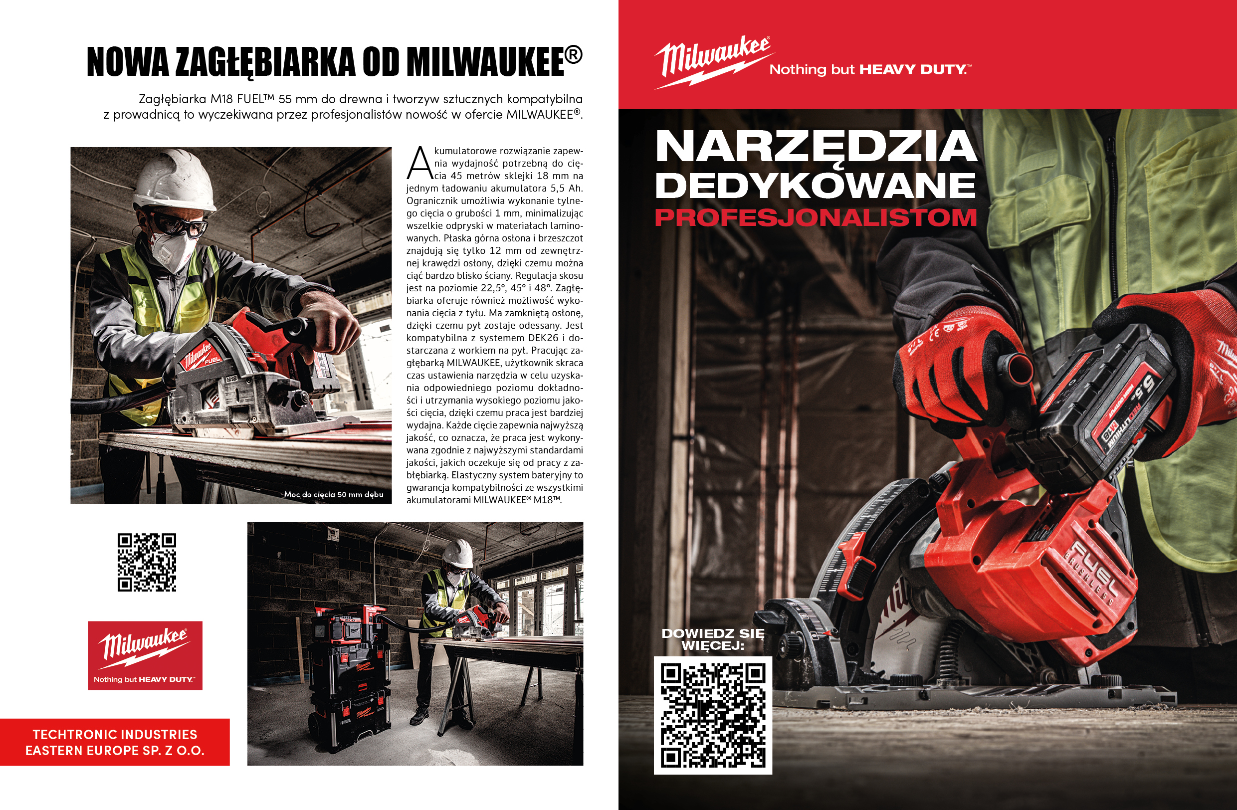 Zagłębiarka M18 FUEL™ 55 mm do drewna i tworzyw sztucznych kompatybilna z prowadnicą to wyczekiwana przez profesjonalistów nowość w ofercie MILWAUKEE®.
