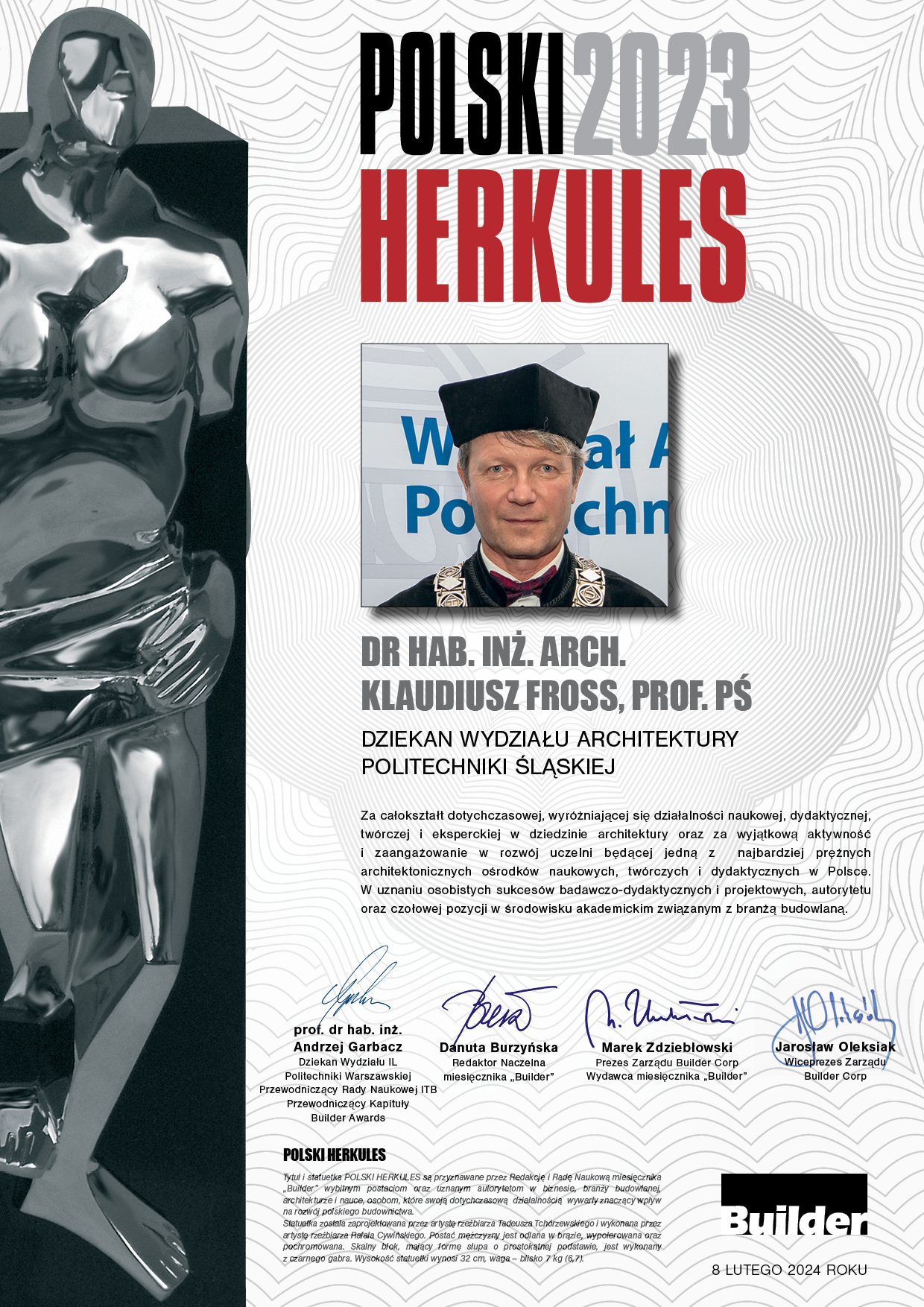 dr hab. inż. arch., prof. PŚ KLAUDIUSZ FROSS – POLSKI HERKULES 2023