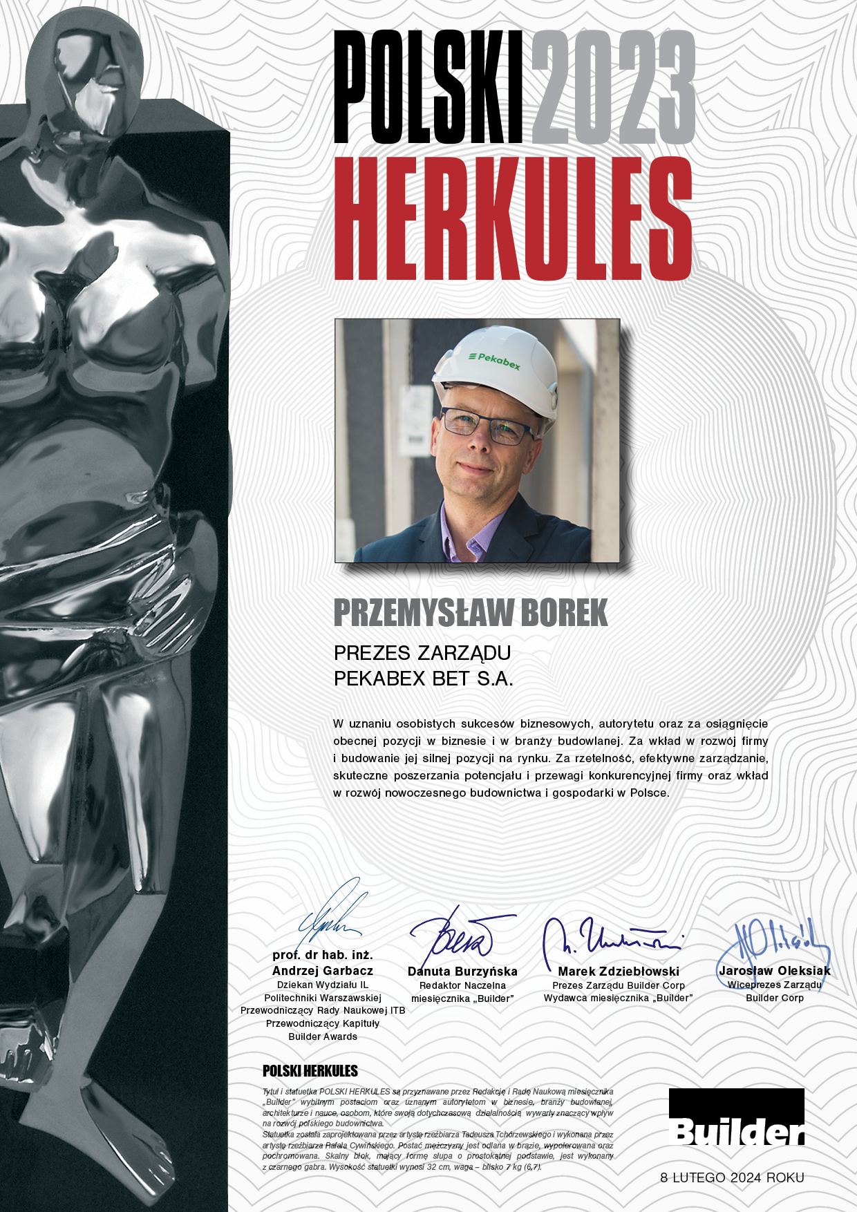Wizjonerstwo Zarządu Grupy Pekabex związane z innowacyjnymi technologiami w budownictwie Przemysław Borek wraz z zespołami inżynierskimi przenosi do fabryk i na budowy. Podczas gdy w Polsce prefabrykacja została zaniechana na dekady – na świecie trwał jej stały rozwój, a więc w kraju mamy do nadrobienia nie tylko jej zastosowanie, ale także działania wizerunkowe branży. Pekabex jako lider pokazuje, że warto podjąć te wysiłki, gdyż efekty przerastają oczekiwania: pod względem jakości, ekologii oraz estetyki obiektów.