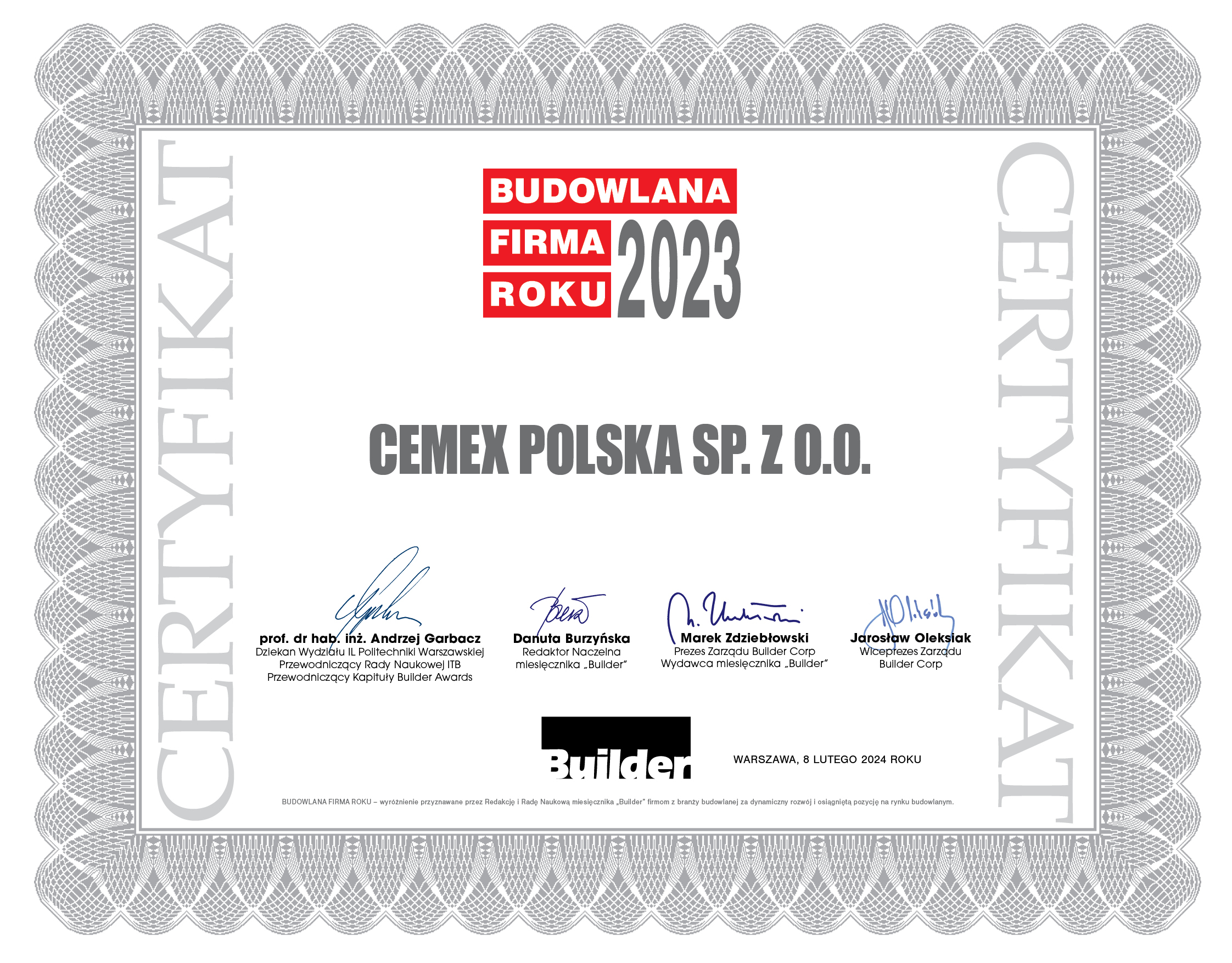 CEMEX POLSKA SP. Z O.O. – BUDOWLANA FIRMA ROKU 2023