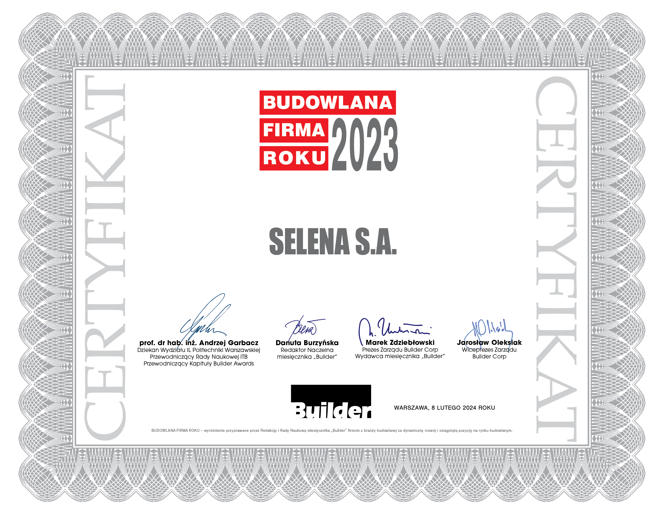SELENA S.A. – BUDOWLANA FIRMA ROKU 2023