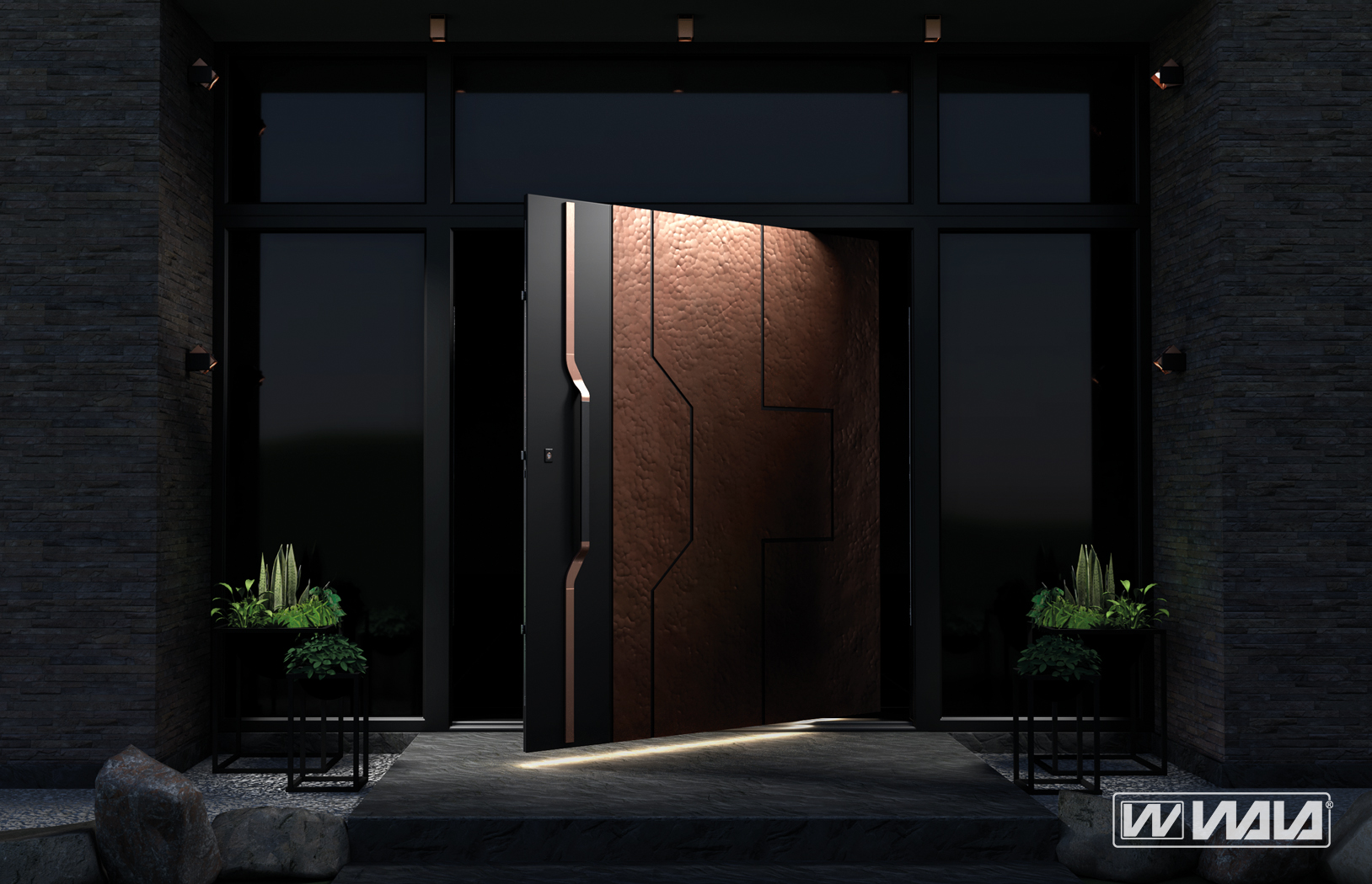 Jedną z kluczowych cech wyróżniających zawiasy PIVOT jest ich zdolność do sprawienia, że nawet największe, monumentalne drzwi otwierają się lekko i z gracją. Ich innowacyjny sposób otwierania sprawia wrażenie lewitacji, nadając drzwiom niepowtarzalny charakter. Co więcej, konstrukcja zawiasu PIVOT pozwala na bezproblemowe i płynne otwieranie drzwi o dużych gabarytach (na ten moment system ALUPROF MB-86N narzuca granice 3400mm wysokości i 2000mm szerokości). Drzwi na zawiasach PIVOT są idealnym wyborem zarówno do wewnątrz jak i do zewnątrz.