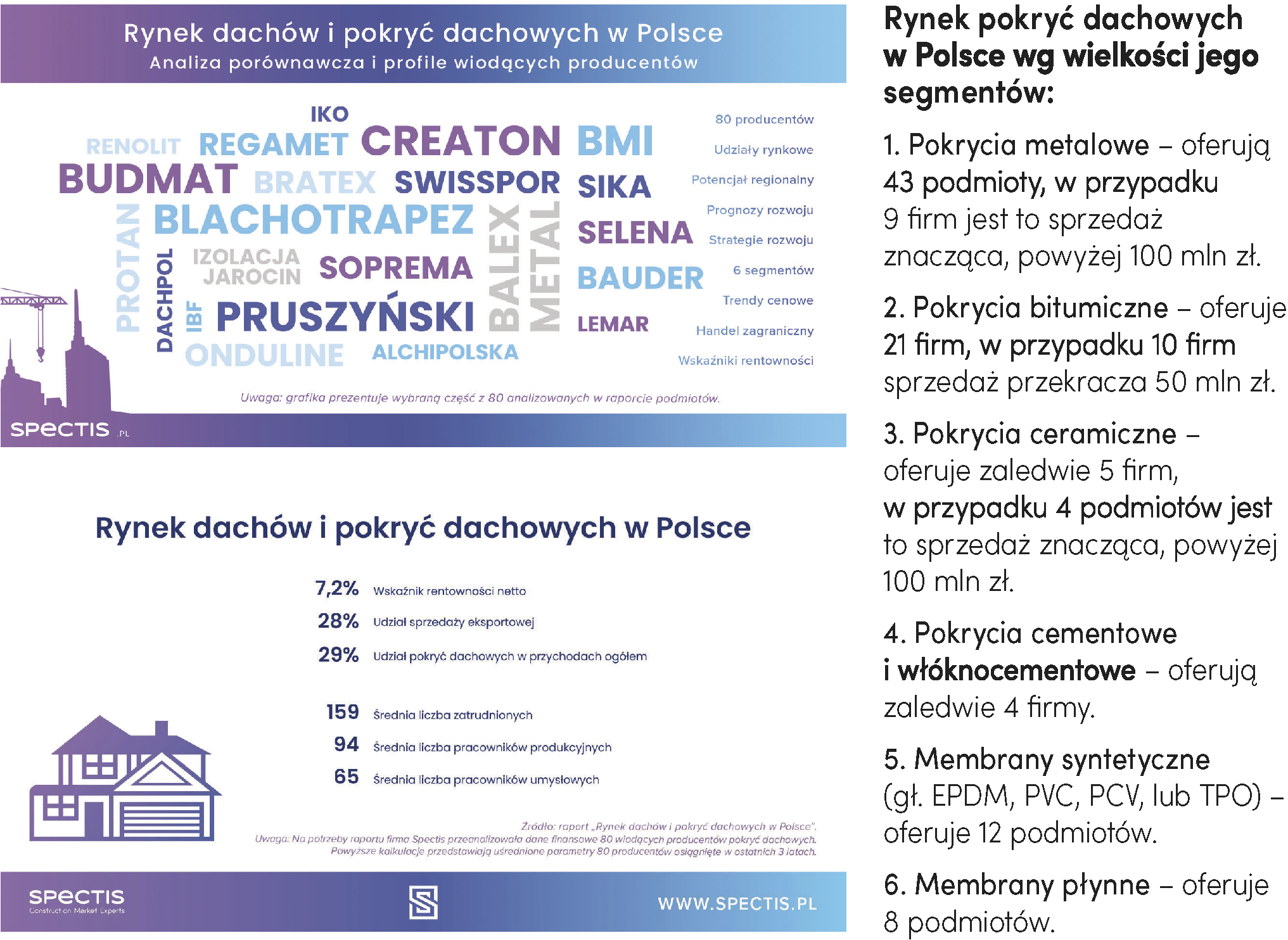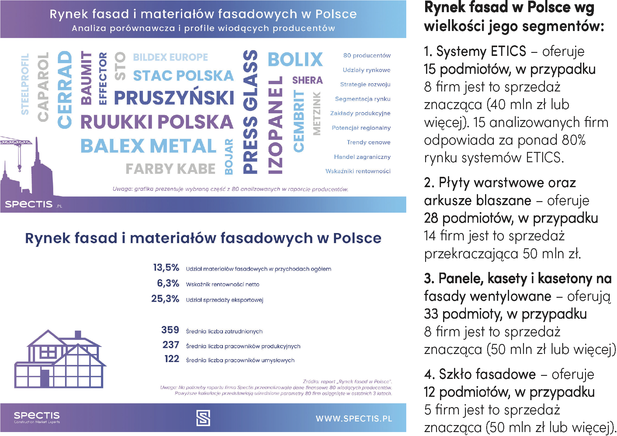 Według szacunków Spectis 15 analizowanych firm odpowiada za ponad 80% rynku systemów ETICS. Wprawdzie całkowita liczba działających na tym rynku podmiotów, posiadających odpowiednie aprobaty techniczne, jest kilkukrotnie większa, jednak większość z nich to niewielkie firmy o zasięgu regionalnym.