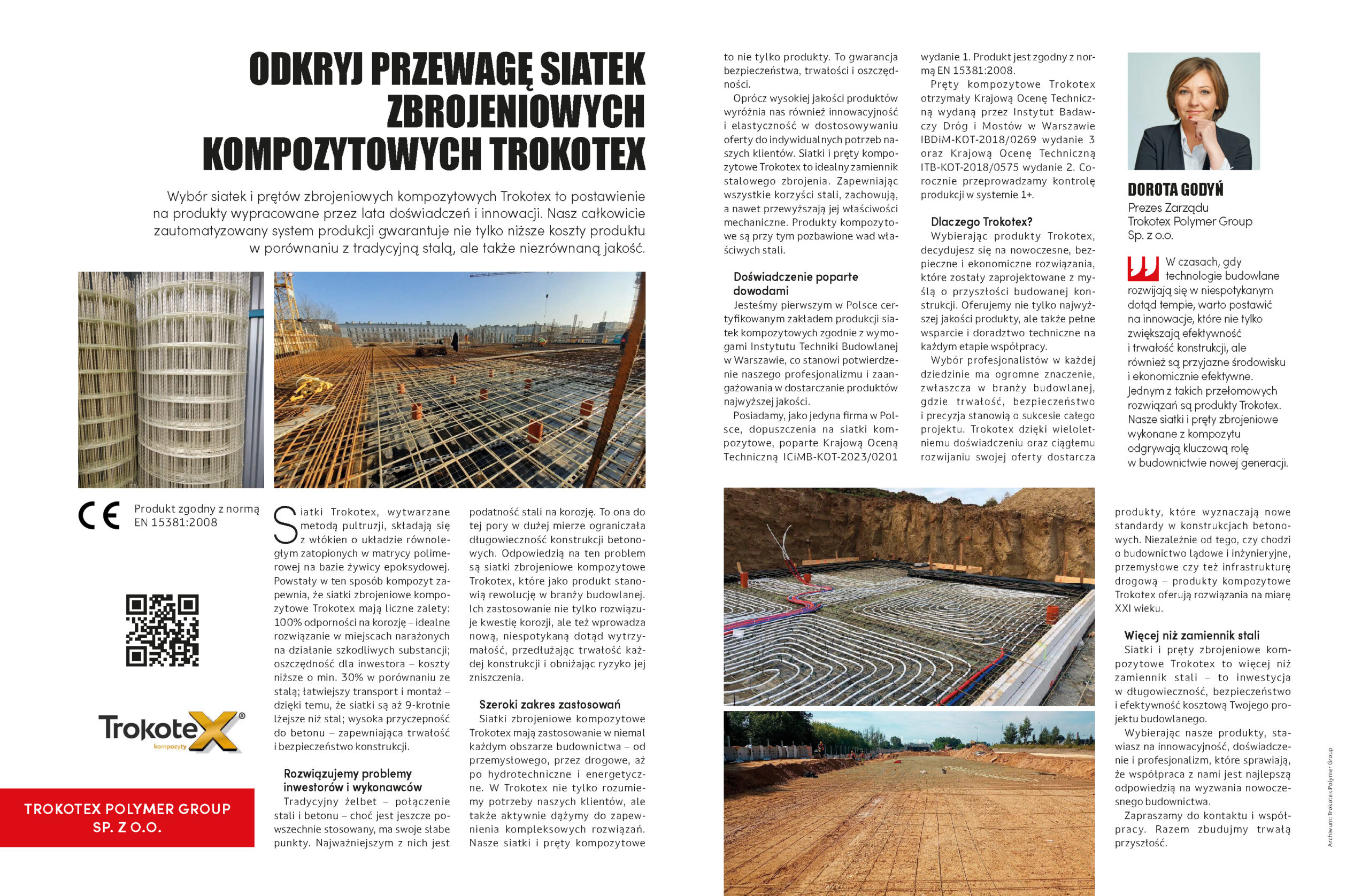 Wybór siatek i prętów zbrojeniowych kompozytowych Trokotex to postawienie na produkty wypracowane przez lata doświadczeń i innowacji. Nasz całkowicie zautomatyzowany system produkcji gwarantuje nie tylko niższe koszty produktu w porównaniu z tradycyjną stalą, ale także niezrównaną jakość.