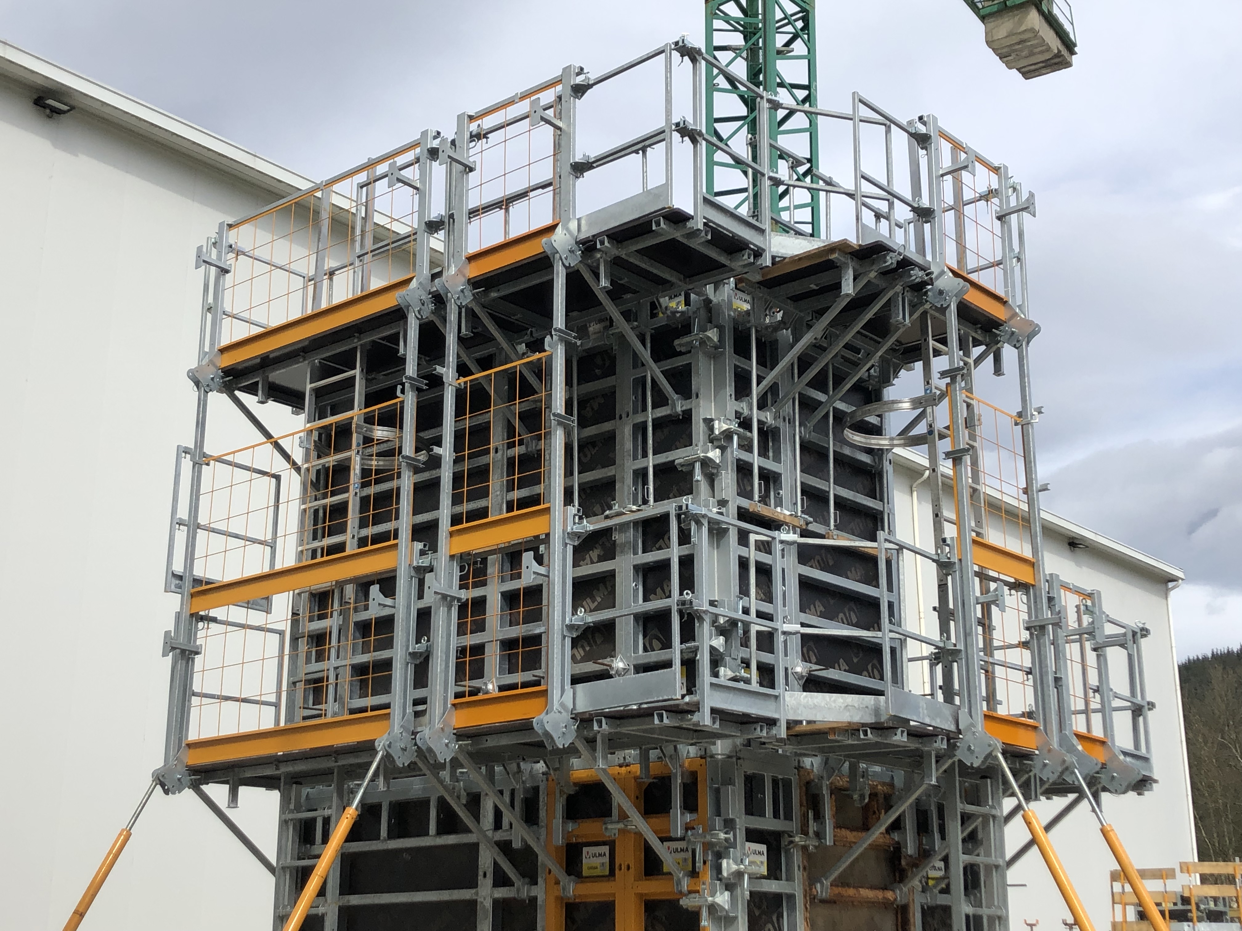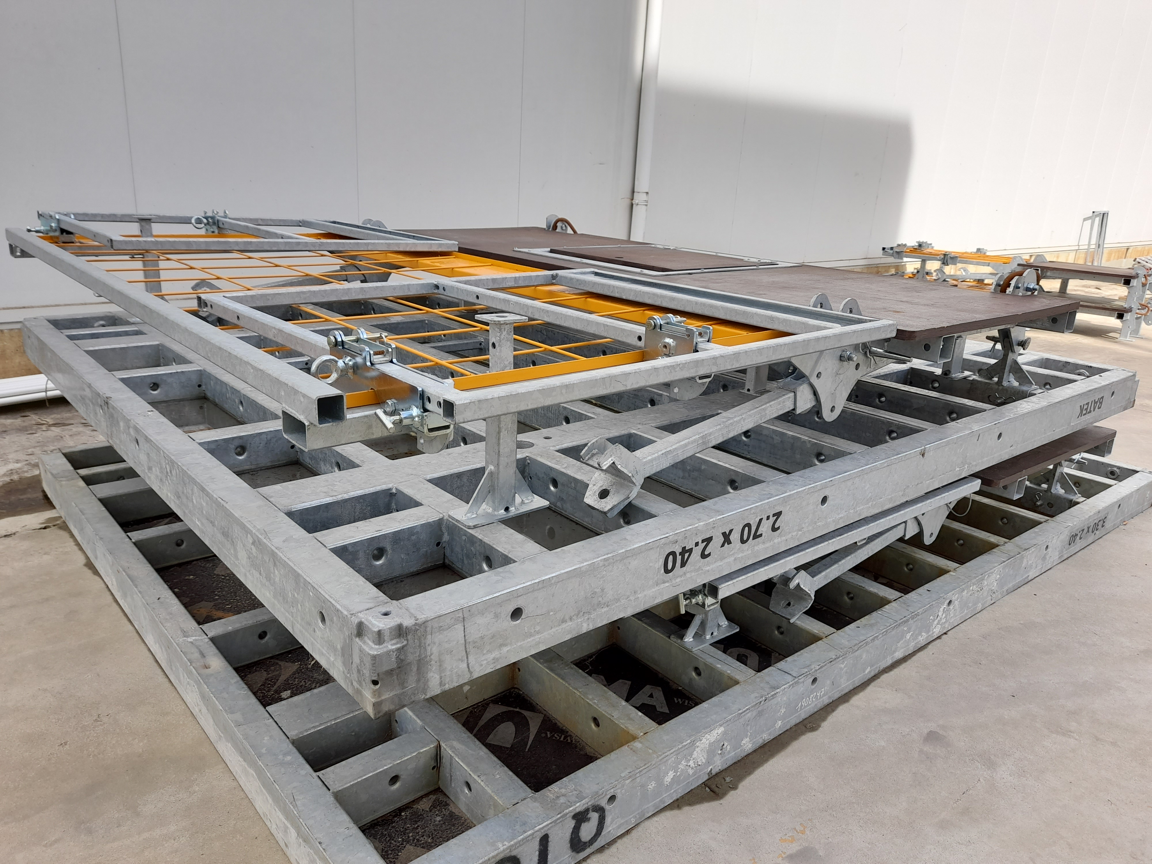 Nie mniej istotnym aspektem jest bezpieczna obsługa deskowania na budowie. System FSP został zaprojektowany w sposób umożliwiający składowanie i przenoszenie w pozycji poziomej płyt deskowania wraz z zamontowanymi podestami. Możliwość sztaplowania płyt z pomostami pozwala na oszczędność miejsca potrzebnego do ich składowania na budowie oraz przyspieszenie prac montażowych.
