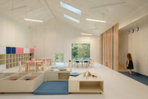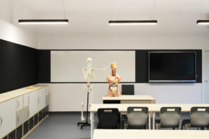 Myśląc o akustyce, warto też zwrócić uwagę na rodzaj prowadzonych zajęć. W przypadku takich pomieszczeń jak aule, większe sale wykładowe czy pracownie językowe, chcąc projektować prawidłowo środowisko akustyczne, należy się zgłosić do specjalisty. Szczególnie istotne staje się tu zagadnienie zrozumiałości mowy – chodzi o to, że pogłos zniekształca dźwięk, który dociera do odbiorcy. W takim przypadku uczeń musi znacznie bardziej skoncentrować się na zrozumieniu poszczególnych słów, co często ogranicza jego zdolność zrozumienia całej wypowiedzi. To wszystko spowalnia pracę ucznia i rodzi frustrację. Projektując żłobki, przedszkola i szkoły, musimy zwracać uwagę na ich akustykę. Dotyczy to otoczenia budynku (hałas środowiskowy), jego konstrukcji (hałas bytowy), instalacji wewnętrznych oraz wnętrz (hałas pogłosowy). Parametry, które powinny być spełnione, opisane są w normie przywołanej w warunkach technicznych PN-B-0215 cz. 2/3/4.