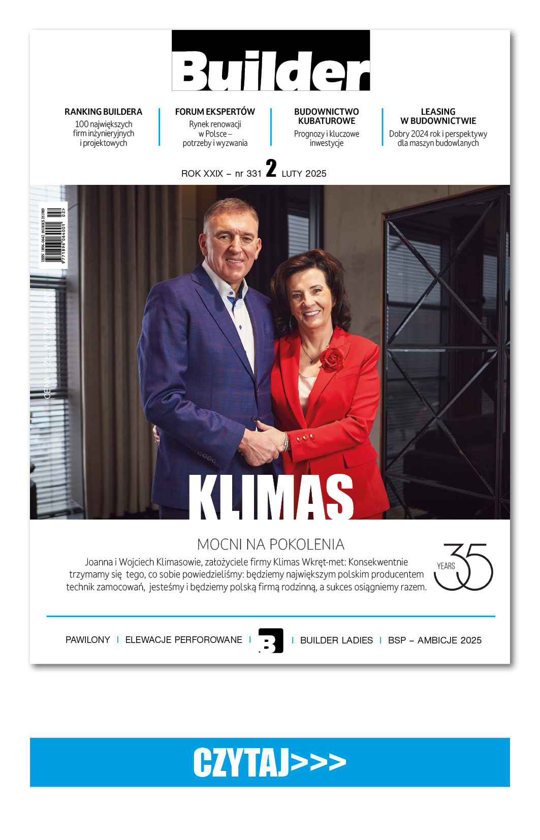Poza tym w numerze poruszamy tak istotne zagadnienia jak: działalność, wyniki oraz wyzwania firm inżynieryjnych i projektowych w Polsce, droga do awansu kobiet w budownictwie, prognozy dla budownictwa kubaturowego, perspektywy dla maszyn budowlanych, wyzwania i aspekty prawne gospodarowania wodami opadowymi i wiele innych. Są też takie perełki jak architektura pawilonów w sercach metropolii.