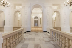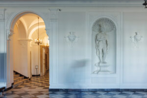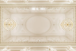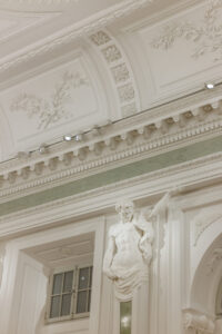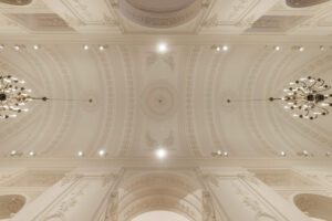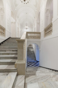 Współpracując z mistrzami w swoim fachu, odnowiliśmy i częściowo zrekonstruowaliśmy detale architektoniczne i sztukaterie. Kreatywne podejście do zagadnień konserwatorskich zaowocowało redukcją dawnej kolorystyki do niuansów faktur i odcieni bieli, tak aby wydobyć elementy kamienne oraz stiuki. Zastosowaliśmy nowoczesne oświetlenie, dzięki któremu udało się wyeksponować, jak nigdy dotąd, wyjątkową strukturę wnętrza, materiały oraz unikatowe elementy wyposażenia, sztukaterie i rzeźby.