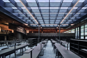 W tym kontekście trudno mówić o Pałacu, bez porównania go z gmachem Biblioteki Narodowej. Biblioteka to modernistyczny obiekt autorstwa Stanisława Fijałkowskiego. Budowany bardzo długo w trudnych czasach PRL-u. Potem modernizowany przez samego autora w latach 90. Dziś jest to obiekt przez wielu uważany za ikoniczny. Niestety z czasem przestał spełniać potrzeby czytelników, w efekcie czego rozpisany został konkurs, który miał dać odpowiedź, jak powinny wyglądać i działać nowe czytelnie Biblioteki Narodowej. Ponad dziesięć tysięcy metrów kwadratowych jednorodnej powierzchni regałów i biurek miało w przyszłości stać się magnesem i komfortowym miejscem do pracy i nauki. Zadanie okazało się bardziej skomplikowane, niż się spodziewaliśmy. Funkcjonalny modernizm po głębszej analizie z użytkownikami i specjalistami okazał się bardzo trudny do adaptacji i przebudowy. Ostatecznie skończyło się to ogromną ingerencją z wieloma wyburzeniami. Na nowo wyznaczyliśmy logikę poruszania się po tej przestrzeni. Na przecięciu ważnych osi pierwotnego projektu określono charakterystyczne punkty, jak lada główna, która stała się procesorem całych nowych czytelń, oraz Czytelnia Dolna, której nadano dwukondygnacyjną wysokość i którą przekryto świetlikiem. Zwróciliśmy czytelników w stronę wewnętrznych patio z nowo zaprojektowanymi ogrodami. Dla większego komfortu i bezpieczeństwa zbiorów wymieniliśmy meble, oświetlenie i instalacje. Wprowadzono takie funkcje towarzyszące jak księgarnia, kawiarnia czy otwarta dla wszystkich czytelnia prasy z miejscami do pracy i nauki. Zapoczątkowaliśmy wykorzystywanie w przestrzeniach odpoczynku klasyków polskiego designu użytkowego, np. fotele Chierowskiego. Przystosowano wnętrza do możliwości organizowania premier książek, spotkań z czytelnikami czy uroczystych bankietów. Warto jednak pamiętać, że te kilka lat funkcjonowania z sukcesem nowych czytelń, z ciągle rosnącą liczbą czytelników, liczne nagrody i wyróżnienia oraz wszelkie udogodnienia w funkcjonowaniu tej przestrzeni są efektem ogromnych zmian wprowadzonych w istniejącą tkankę.