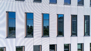 Zgodnie z wolą architektów kluczowym elementem tej realizacji stała się więc prefabrykowana fasada z odkrytym kruszywem i szlifowaną powierzchnią. Ze względu na charakter procesu produkcji każda płyta jest wizualnie unikatowa.