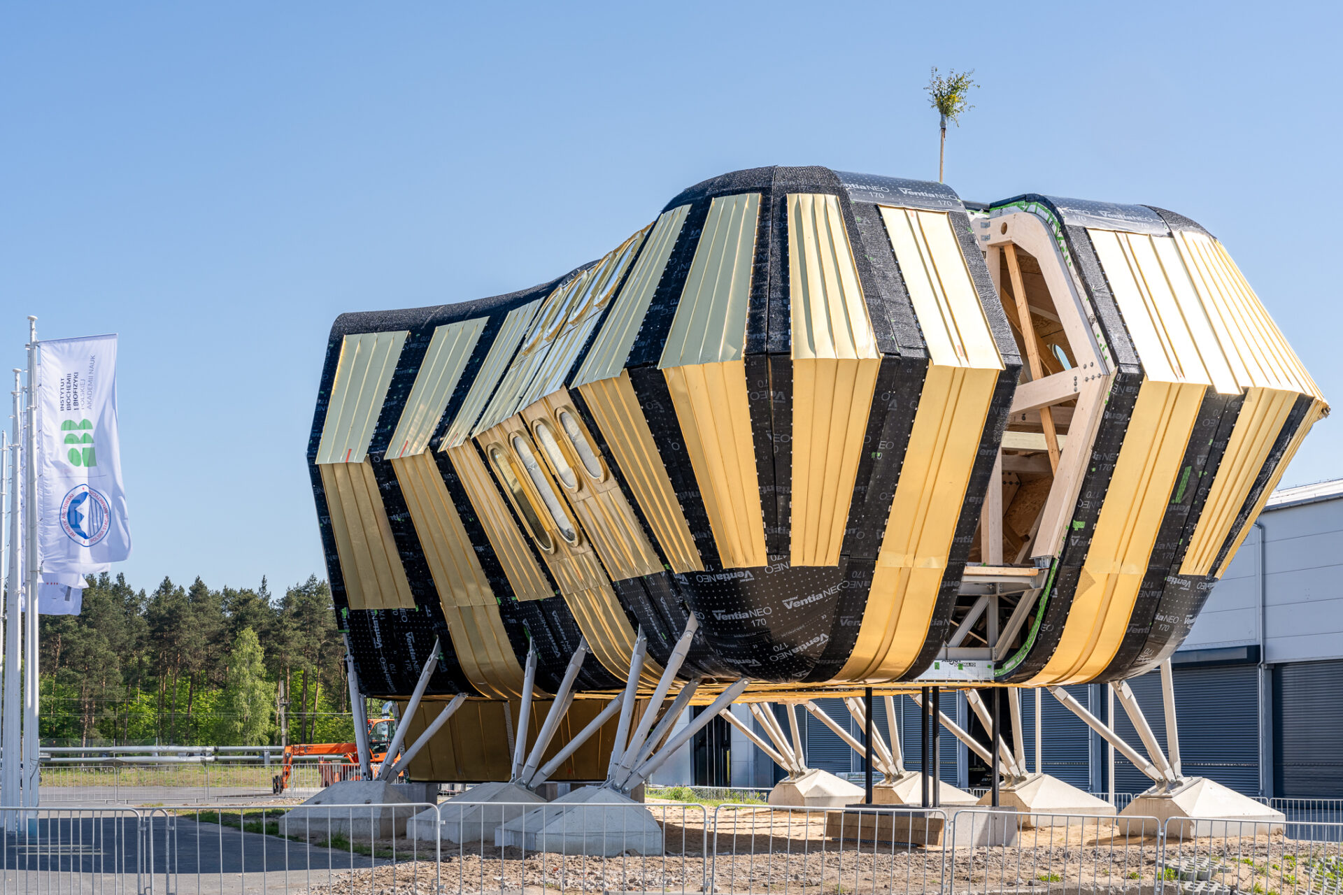 Działania rozpoczęto w marcu, od położenia prefabrykowanych fundamentów i przytwierdzenia konstrukcji stalowej, na której posadowiony jest budynek. W kolejnych tygodniach prowadzono montaż głównej drewnianej konstrukcji budynku, elementów stropowych i paneli elewacyjnych. Znaczna część z nich była wykonywana na półautomatycznych liniach do prefabrykacji elementów drewnianych firmy Andrewex Construction, co przyśpieszyło proces produkcji i umożliwiło utrzymanie bardzo wysokiej jakości wykonywanych elementów.