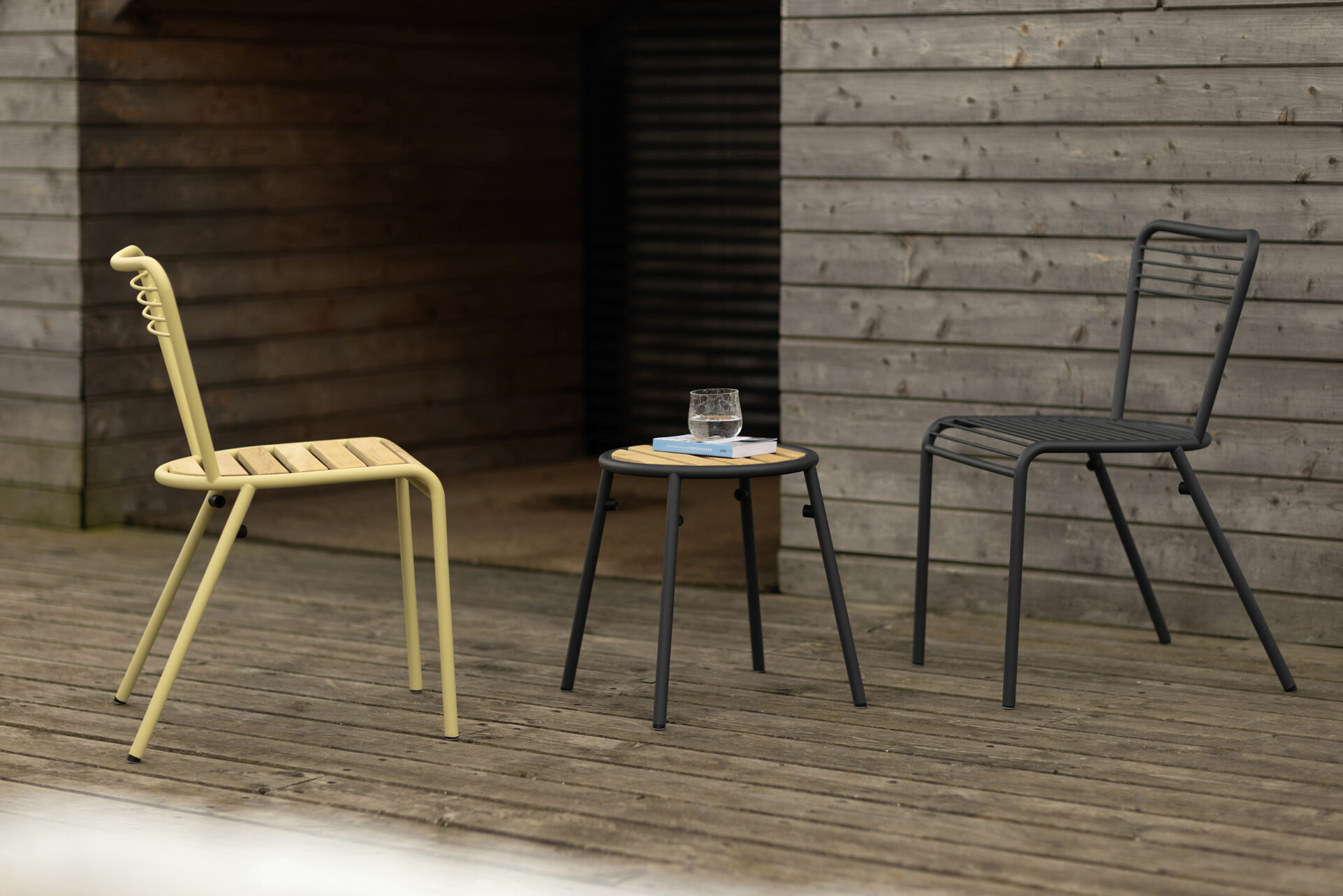 Cała kolekcja zaczynała się od stalowego, sztaplowanego krzesła. Stopniowo dodaliśmy stołek i hoker – wszystkie trzy warianty są dostępne również z drewnianym siedziskiem. Do krzeseł naturalnie należy również stół. Długo testowaliśmy idealny rozmiar i ostatecznie całkowicie słusznie zostaliśmy przy wersji okrągłej i owalnej – każda z nich ma swoje zalety.