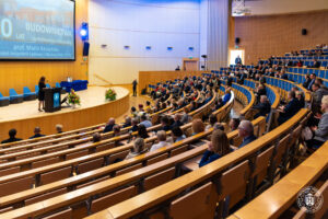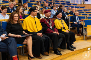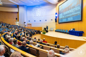 Dnia 22 maja 2025 r. uczestnicy zjazdu dziekanów mieli sposobność uczestniczyć w obchodach jubileuszu 80-lecia Budownictwa na Politechnice Poznańskiej. Wydarzenie, zorganizowane przez Wydział Inżynierii Lądowej i Transportu [2], stanowiło emocjonującą podróż w przeszłość. Uroczystość uświetnił swoją obecnością profesor Władysław Łańczak, który w czerwcu obchodził 100. rocznicę urodzin. Ten naukowiec, projektant, wykładowca i ekspert, całe życie związany z Politechniką Poznańską, jest autorytetem dla wielu pokoleń inżynierów budownictwa. Uroczystego otwarcia wydarzenia dokonali prof. dr hab. inż. Jacek Pielecha – Dziekan WILiT oraz prof. dr hab. inż. Wojciech Sumelka – Prorektor ds. Nauki Politechniki Poznańskiej. Następnie prof. dr hab. inż. Józef Jasiczak oraz prof. dr hab. inż. Tomasz Mróz (byli Dziekani wydziałów związanych z budownictwem) przedstawili dorobek budownictwa na przestrzeni ostatnich 80 lat. Równie wzruszającym momentem było odnowienie ponad siedemdziesięciu dyplomów absolwentom Politechniki Poznańskiej z rocznika 1975. W dalszej kolejności gratulacje z okazji jubileuszu 80-lecia budownictwa wygłosili: prof. dr hab. inż. Maria Kaszyńska – Przewodnicząca Komitetu Inżynierii Lądowej i Wodnej PAN oraz Przewodnicząca PZITB, dr inż. Zenon Kierczyński – Prezes Wielkopolskiej Izby Budownictwa oraz Bartosz Komosa – przedstawiciel studentów. W ostatniej części Prorektor ds. Nauki Politechniki Poznańskiej wraz z Dziekanami WILiT złożyli życzenia profesorowi Władysławowi Łańczakowi w imieniu wszystkich zebranych. Na ręce Dziekana WILiT spłynęły gratulacje i życzenia od przedstawicieli jednostek i organizacji z całego kraju.