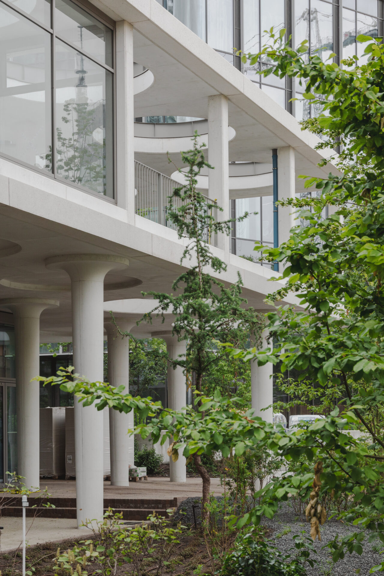 Dziewięciopiętrowy budynek Office House wyróżnia się na tle biznesowego „city” przy rondzie Daszyńskiego konstrukcją z białego betonu. Dwukondygnacyjna pergola, zrealizowana w układzie płytowo-słupowym, z obwodową belką krawędziową, stanowi wyrafinowaną formę architektoniczną. Kielichowe, smukłe kolumny na parterze o zmiennej geometrii, nawiązujące do kolumn charakterystycznych dla Domu Słowa Polskiego, nadają konstrukcji lekkość i dynamikę. Ważnym elementem biurowca są loggie i porośnięte zielenią balkony na każdym piętrze. Pracownicy jednej z mieszczących się tu firm będą także mogli korzystać z tarasu na dachu. W strukturze loggii i tarasu zastosowano konstrukcję stalową, a dzięki wzmocnieniu płyty pomostowej są one otwartą przestrzenią, której nie przecinają żadne słupy wspierające. Wyjątkową częścią projektu są wyrzeźbione także z białego betonu spiralne schody w holu głównym. Stanowią one zarówno funkcjonalne, jak i eleganckie połączenie kondygnacji. Office House to 32 tys. mkw. nowoczesnej powierzchni biurowej. Wokół budynku, jak i na stworzonym tu skwerze deweloperzy zasadzili ponad 60 drzew, z których najwyższe mierzą nawet 9 metrów. To doskonały przykład tego, jak nowoczesna inżynieria łączy się z estetyką, tworząc przestrzenie, które inspirują i służą społeczności.