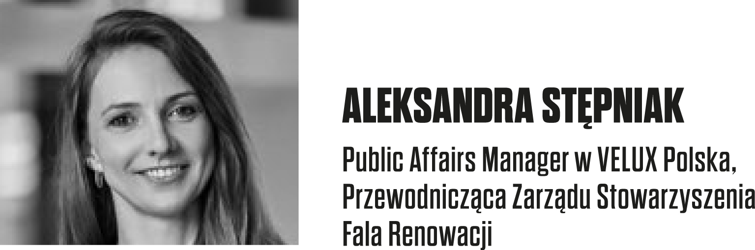 Jak wynika z „Barometru Zdrowych Budynków”, publikacji przygotowywanej przez ekspertów z BPIE we współpracy z Grupą VELUX, w Polsce ok. 70% budynków ma niski i bardzo niski standard energetyczny, 12% obywateli boryka się z problemem ubóstwa energetycznego, a do tego ¼ z nas jest narażona na przynajmniej jeden z aspektów syndromu chorych budynków, jak brak odpowiedniej temperatury, wilgoć i pleśń, nadmierny hałas czy niewystarczająca ilość światła dziennego. Nie ma wątpliwości, że potrzebujemy masowej modernizacji energetycznej naszych zasobów budynkowych. I nie podlega dyskusji fakt, że będzie to kosztowne. Według raportu Polska Fala Renowacji – korzyści dla Polski do 2035 r. opublikowanego przez Stowarzyszenie Fala Renowacji roczne nakłady inwestycyjne na renowację budynków i modernizację oświetlenia do roku 2035 wyniosą 36,6 mld zł. Ten sam raport podaje, że roczne policzalne korzyści wynikające jedynie z ograniczenia kosztów energii poprzez poprawę efektywności energetycznej budynków w skali kraju wyniosłyby 50,8 mld zł.