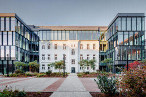 Wyzwań technicznych zaś mieliśmy całą miarę, jak to zwykle bywa przy realizacjach modernizacji wielkich historycznych budynków wraz z zamkniętymi do tej pory przyległymi do nich terenami. Tu znalazłoby się miejsce na długi oddzielny profesjonalny wykład na temat pracy przy zabytkach i ich otoczeniu, zmiennościach losu i decyzji inwestorskich w trakcie wieloetapowego i wieloletniego zadania oraz współpracy z kolejnymi konserwatorami zabytków. Bo cały obszar – 11 budynków historycznych wraz z terenem 4-hektarowej działki – objęty jest wpisem do rejestru zabytków.